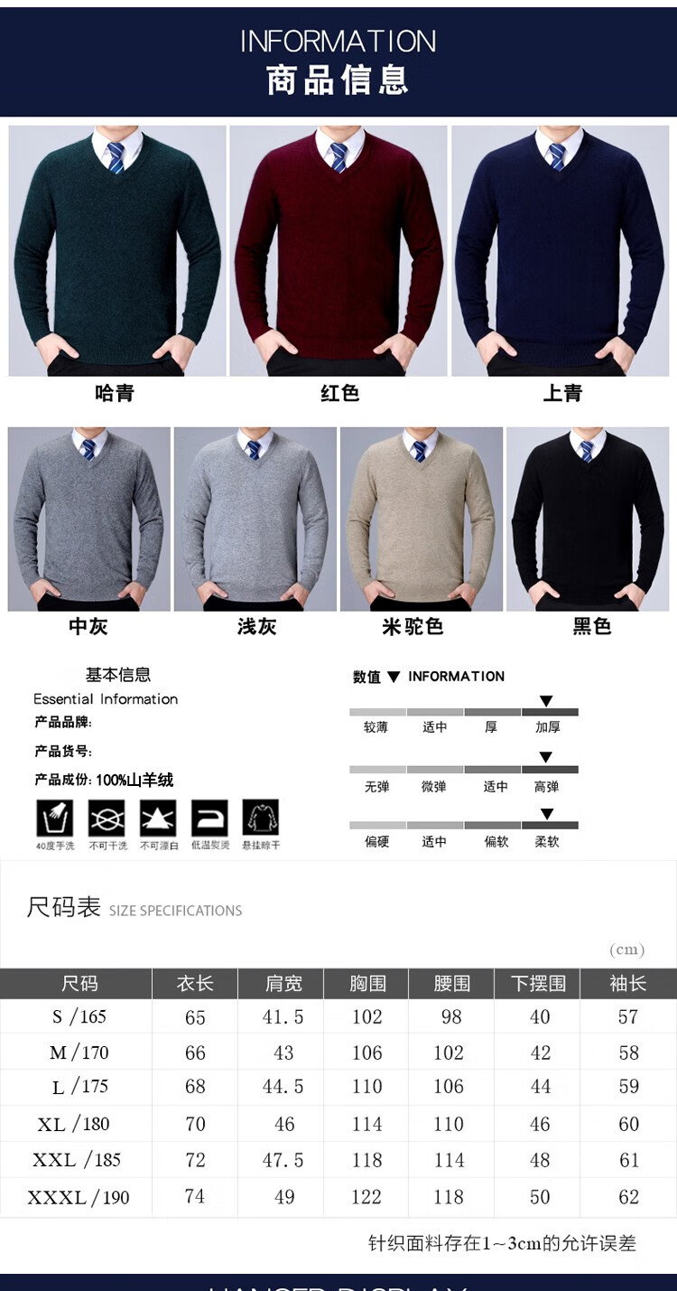 Hengyuanxiang pure wool sweater market 100% pure mountain middle-aged men V-neck thin daddy sweetheart neck sweater pure 100 light gray_V collar pure 100 175 yards (recommended 140-160 Jin Jin equals 0.5 kg) pure 100