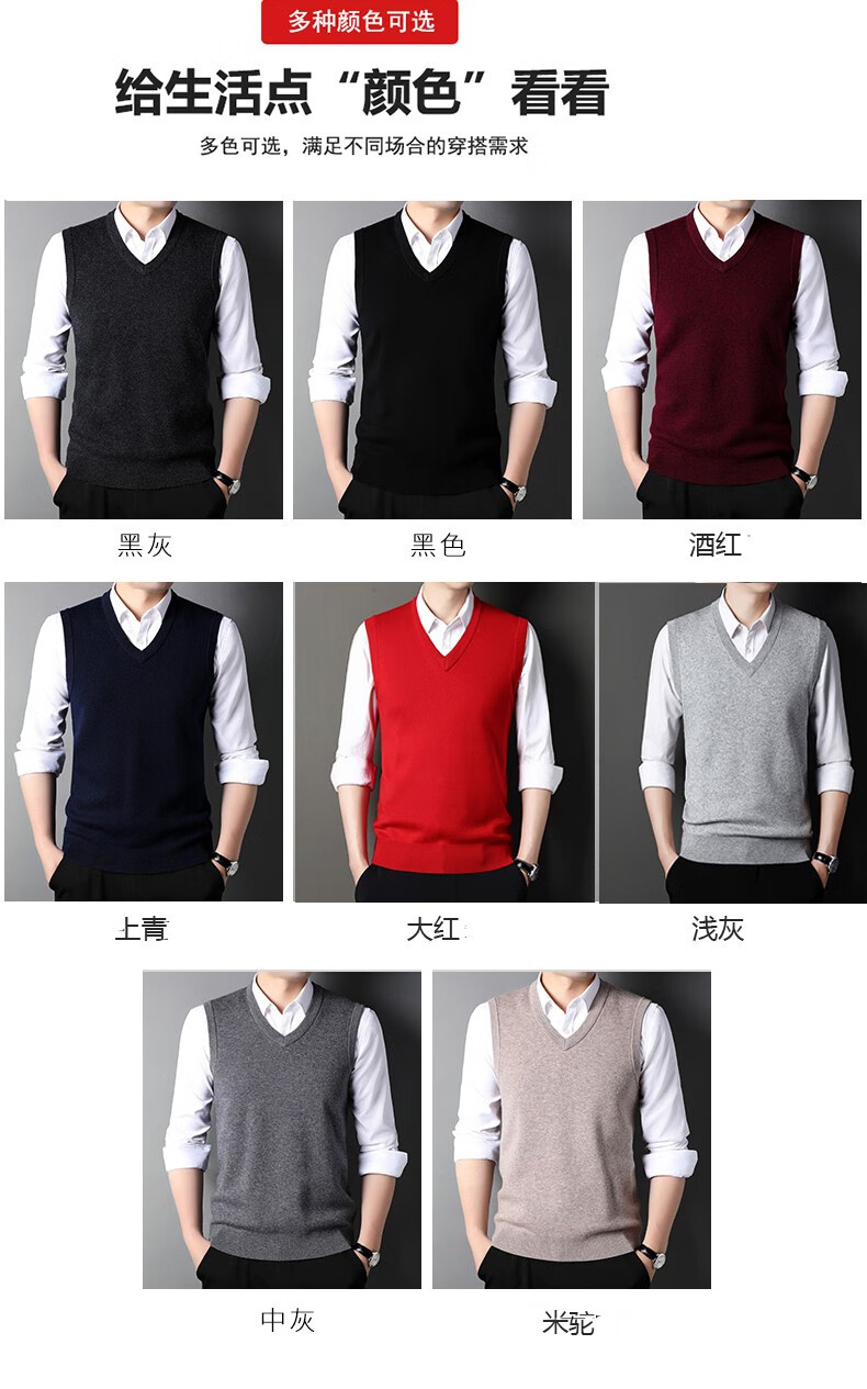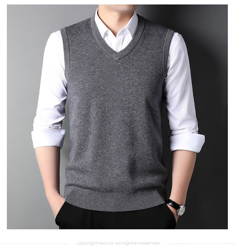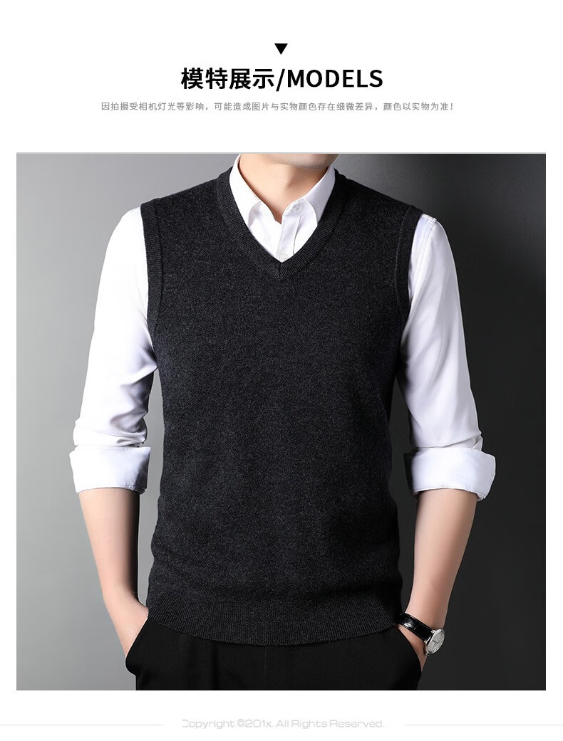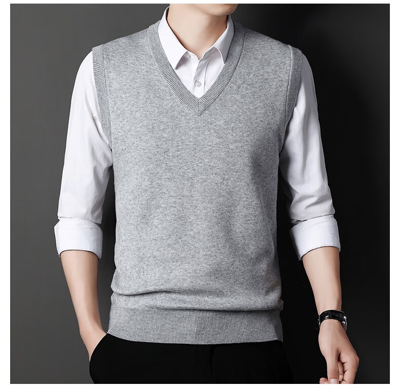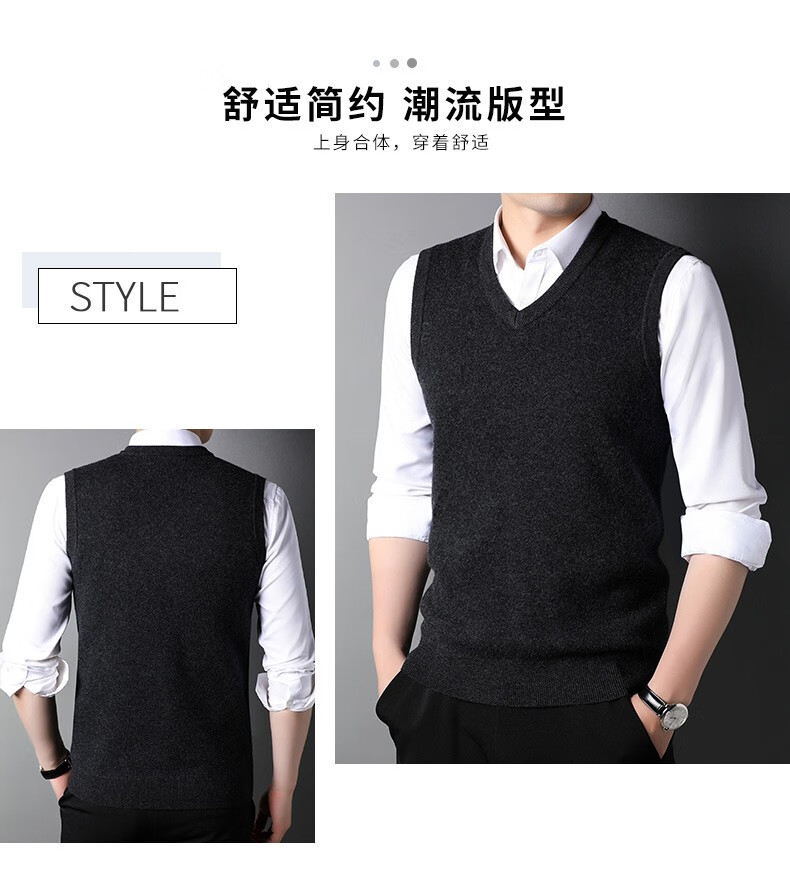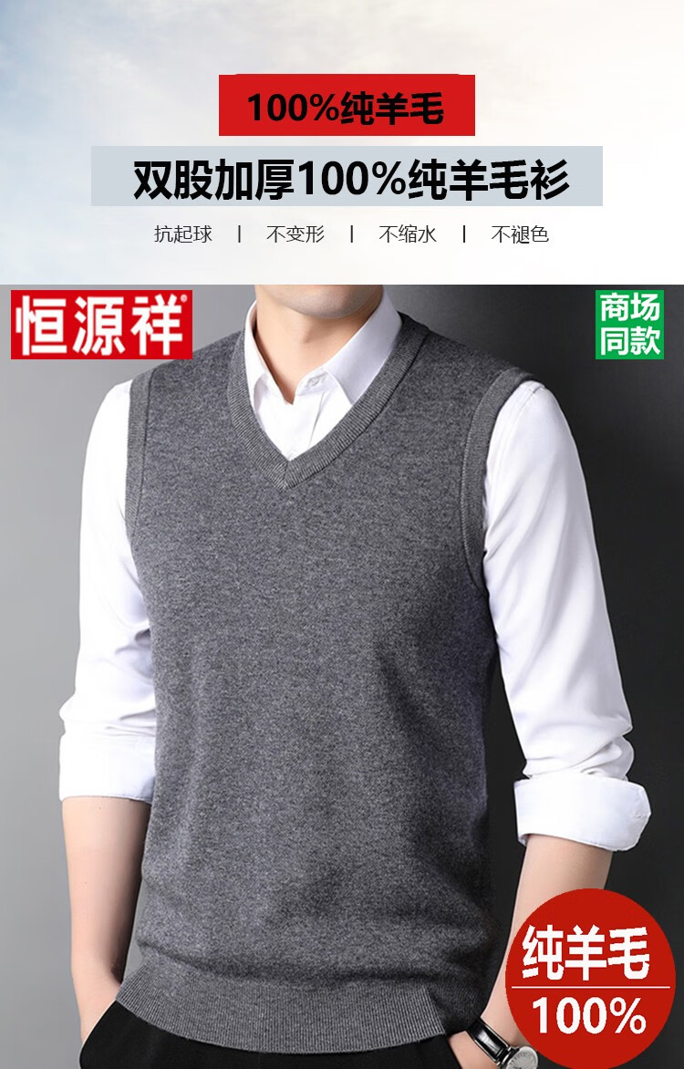 Hengyuanxiang pure wool sweater 100% pure wool men's thickened knitted vest autumn and winter sleeveless vest for young and middle-aged people V-neck 2108 medium gray vest pure 100 L 170 (recommended 120-140 Jin Jin equals 0.5 kg) pure 100