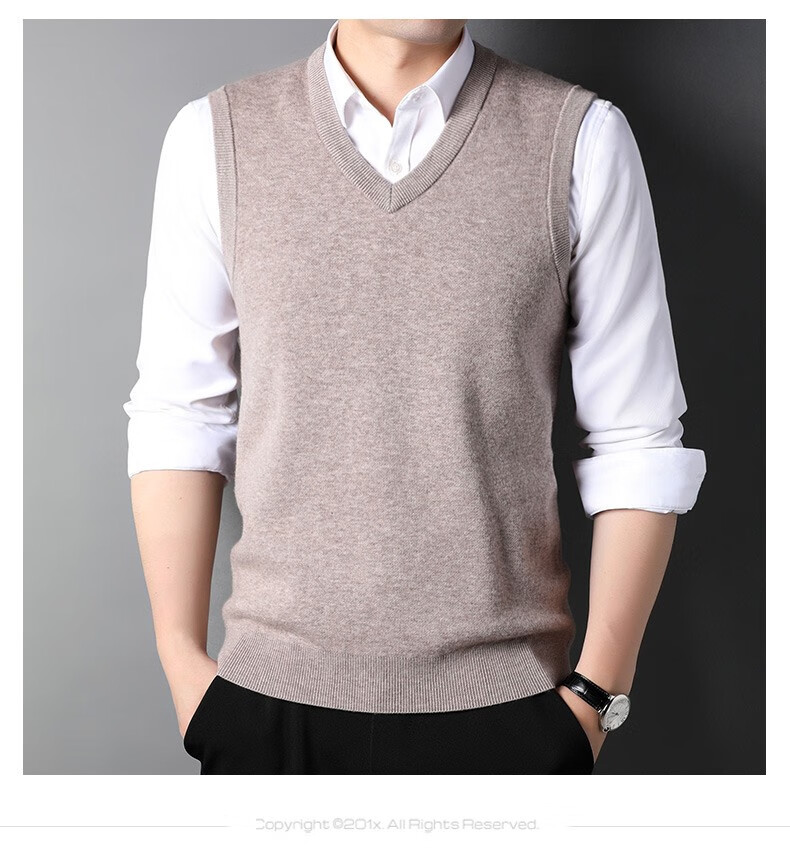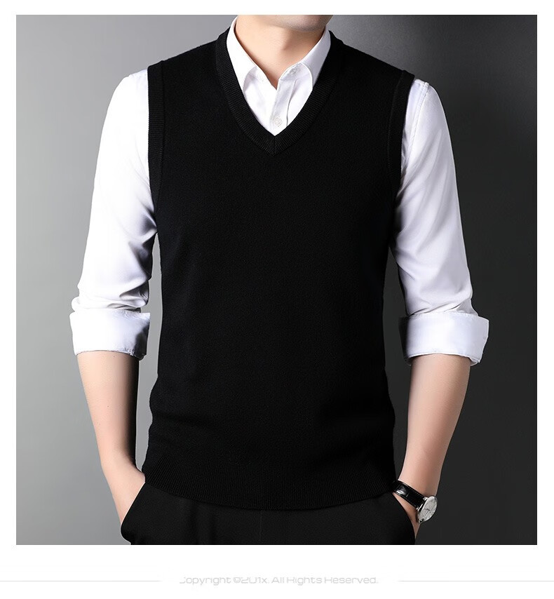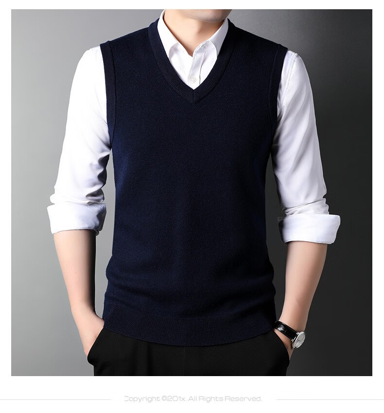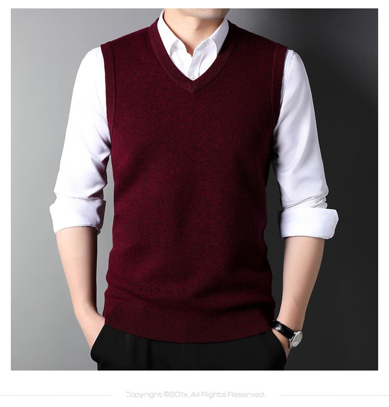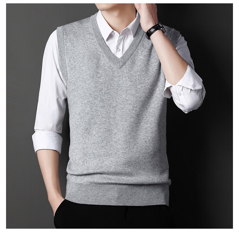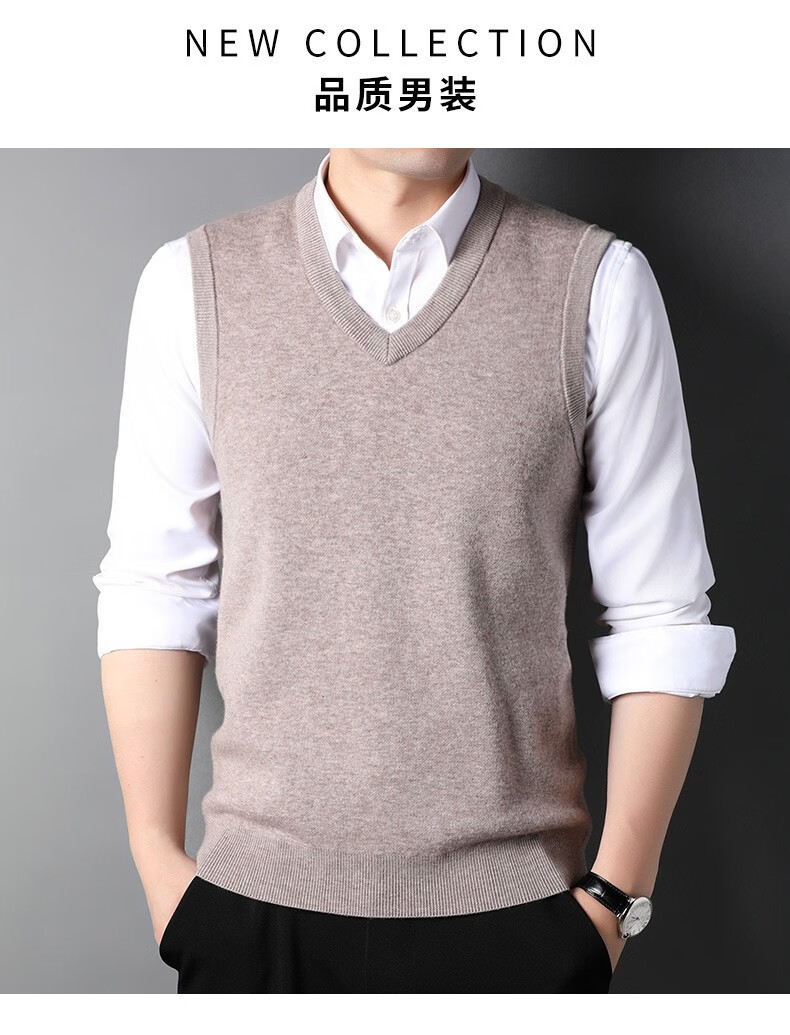 Hengyuanxiang pure wool sweater 100% pure wool men's thickened knitted vest autumn and winter sleeveless vest for young and middle-aged people V-neck 2108 medium gray vest pure 100 L 170 (recommended 120-140 Jin Jin equals 0.5 kg) pure 100