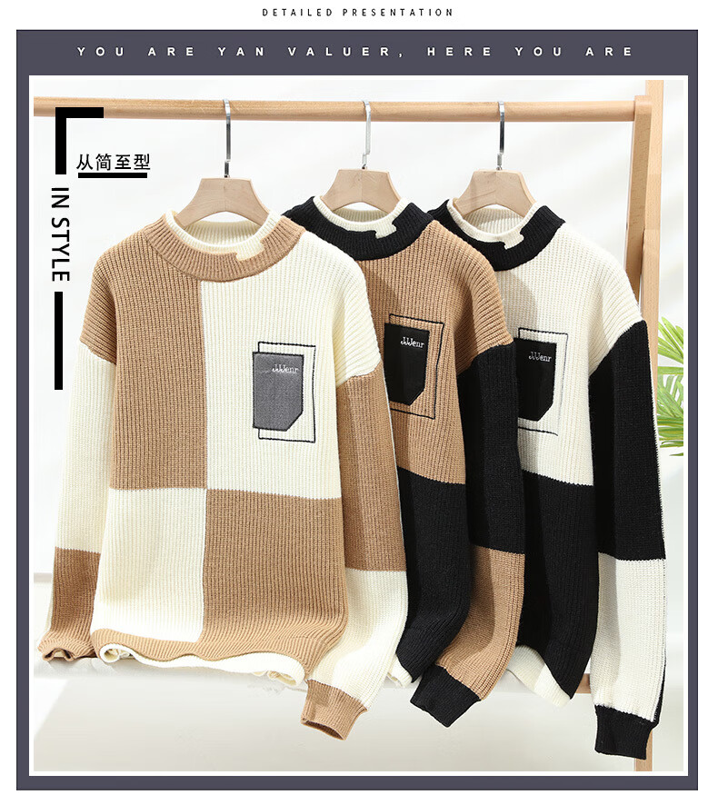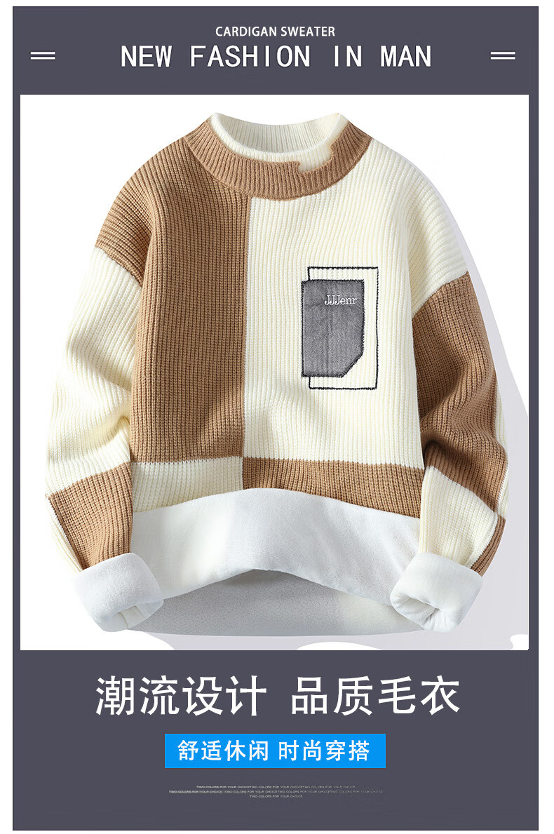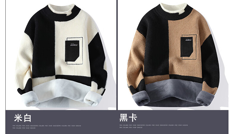 Hengyuanxiang (HYX) Sweater Men's Winter Youth Medium and High Velvet Thickened Sweater Round Neck Korean Version Fake Two-Piece Sweater Knitted Sweater Fashion High-end Brand Special Price Break Code Regular M691 Style Off-White High-end Brand Special Price Break Code 2XL 135-150Jin Jin is equal to 0.5 kg