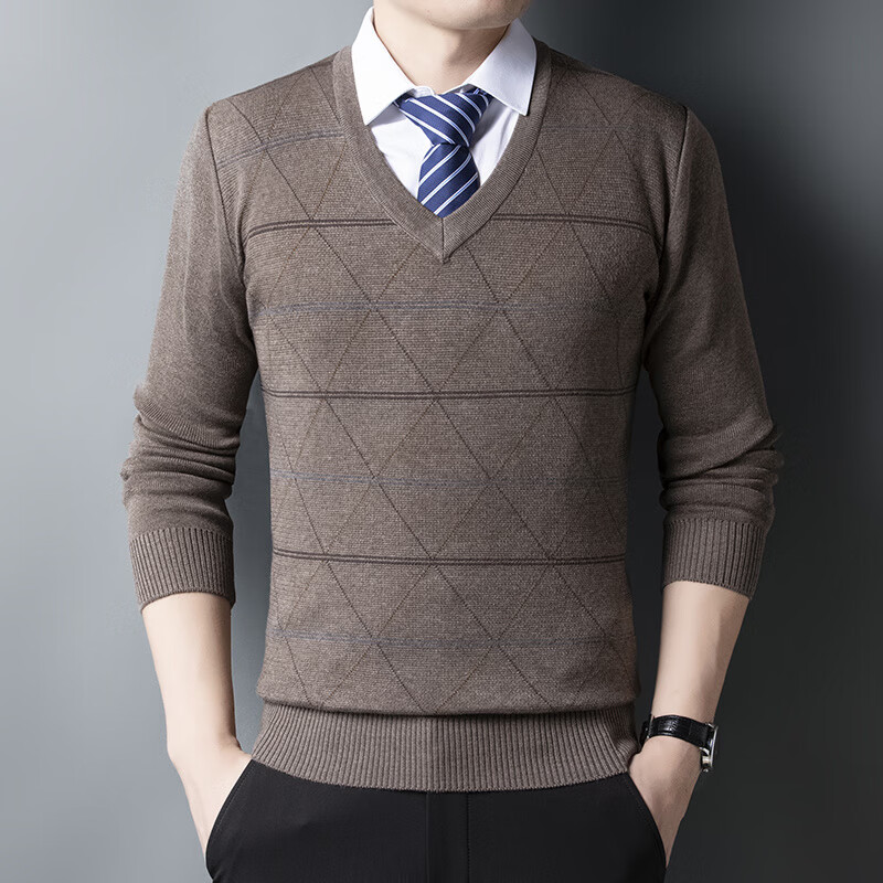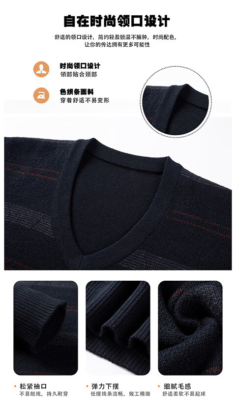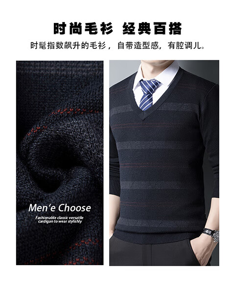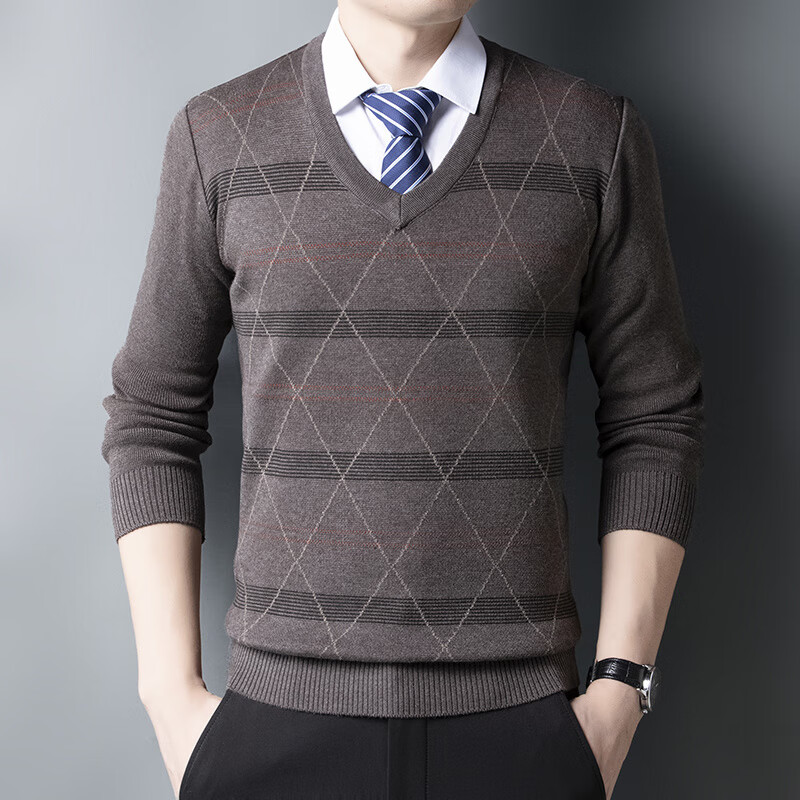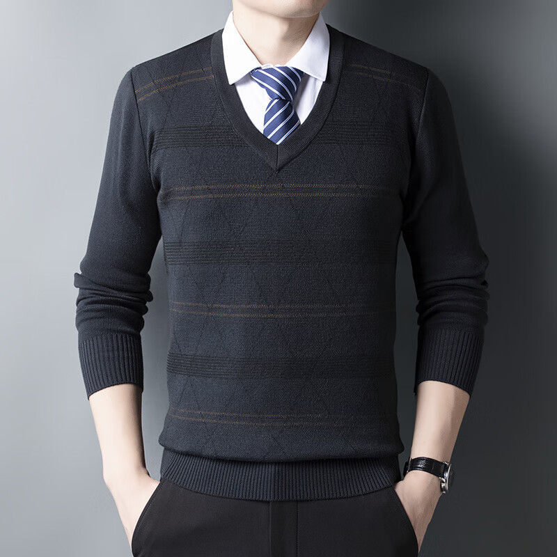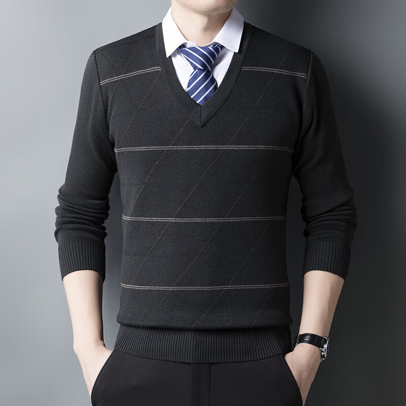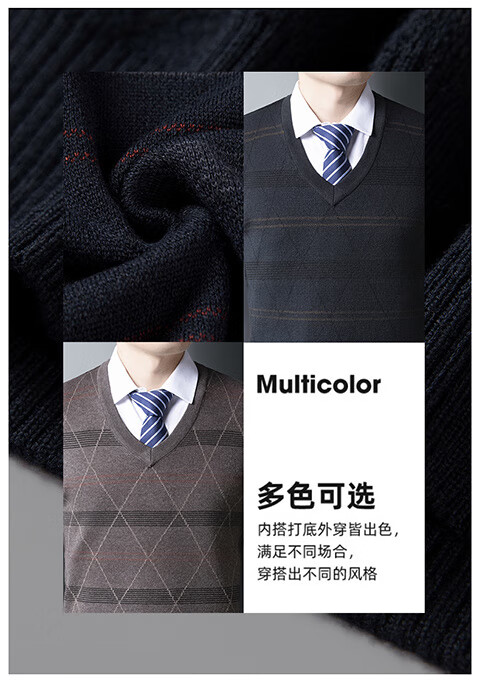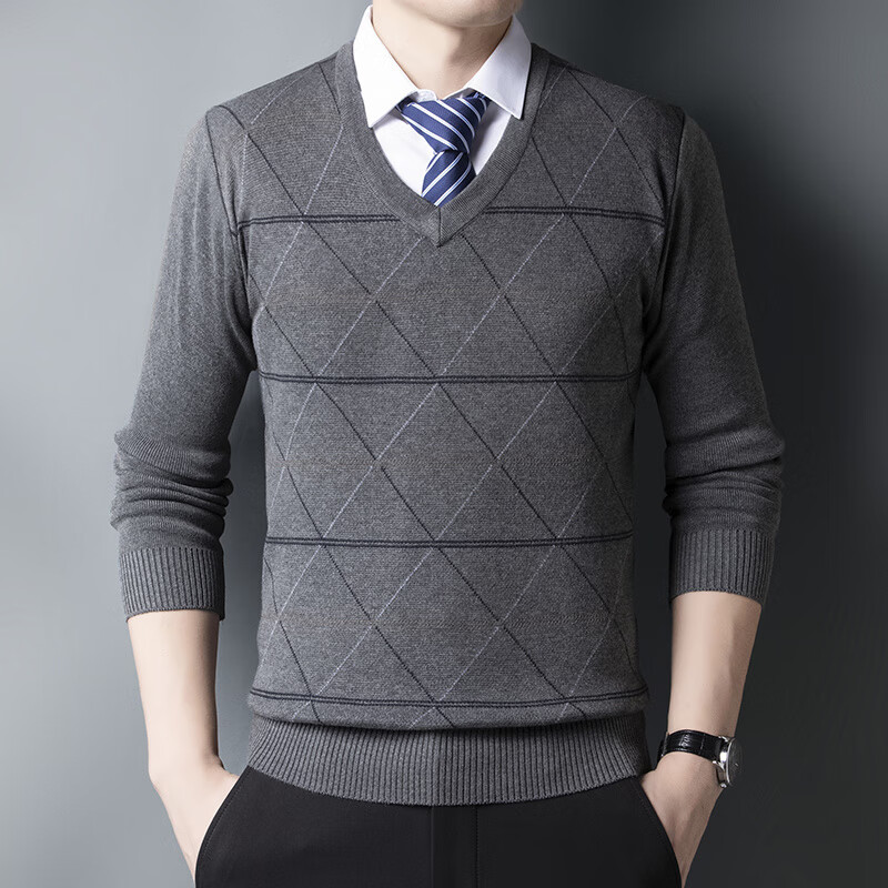 Hengyuanxiang (HYX) autumn and winter dad wear men's sweater V-neck thickened knitted sweater middle-aged and elderly plaid sweetheart collar bottoming shirt high-end brand special price off code JS1977 gray thickened high-end brand special price off code 3XL185 code recommended 170-190 Jin Jin equals 0.5 kg