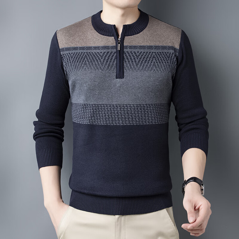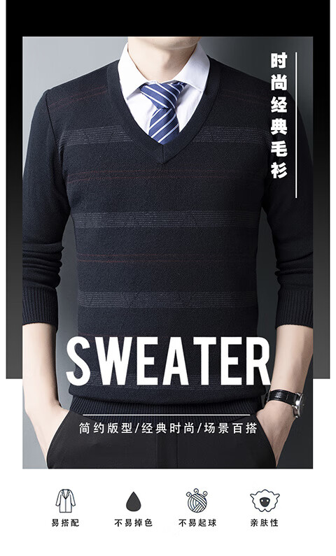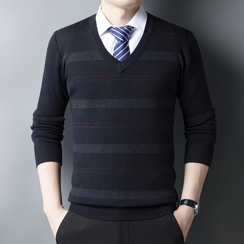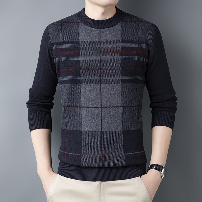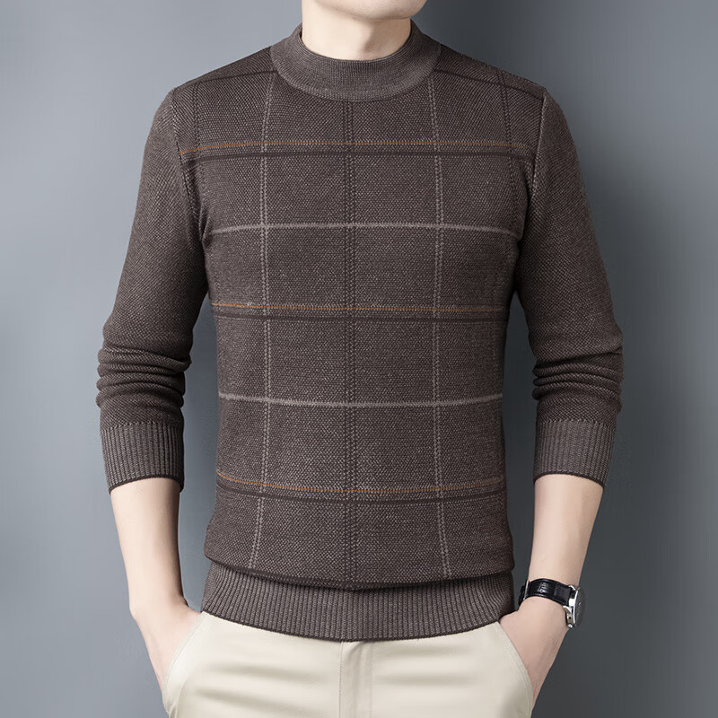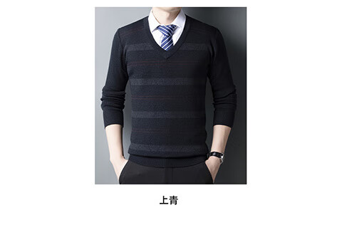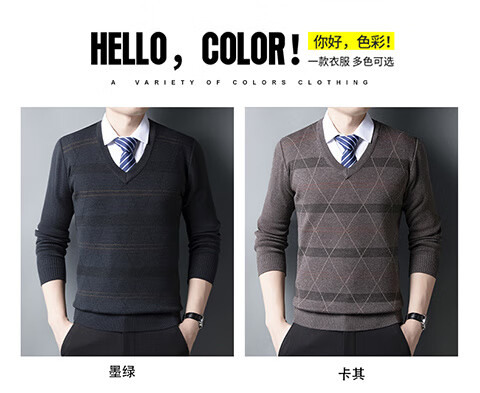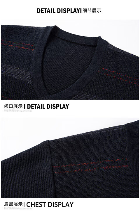 Hengyuanxiang (HYX) autumn and winter dad wear men's sweater V-neck thickened knitted sweater middle-aged and elderly plaid sweetheart collar bottoming shirt high-end brand special price off code JS1977 gray thickened high-end brand special price off code 3XL185 code recommended 170-190 Jin Jin equals 0.5 kg