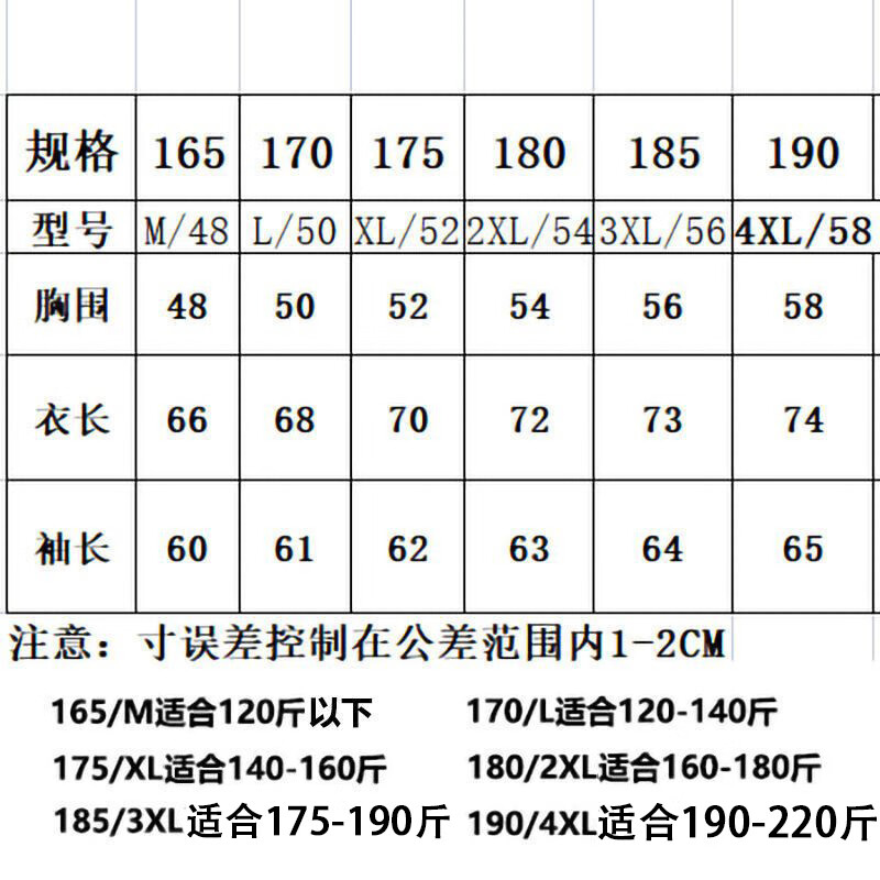 China (cm) 165 / 88-90 170 / 96-98 175 / 108-110 180 / 118-122 185 / 126-130