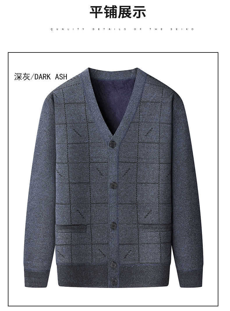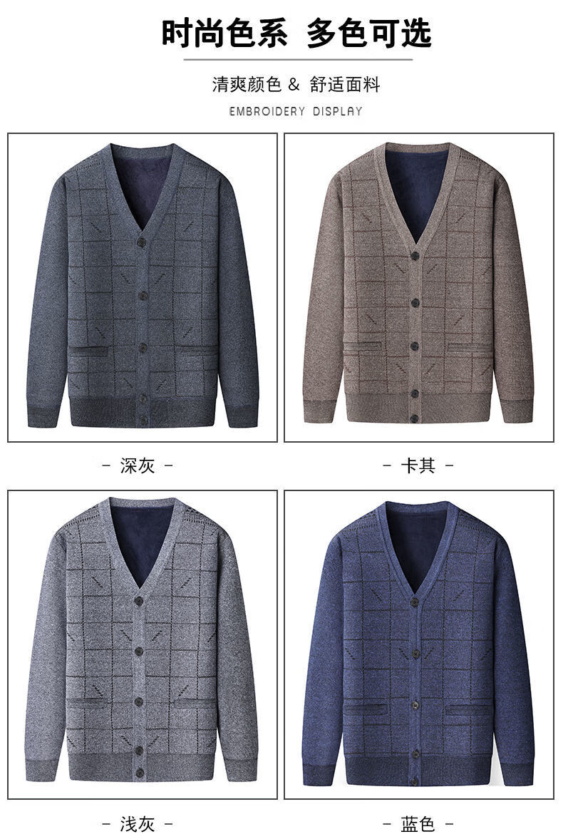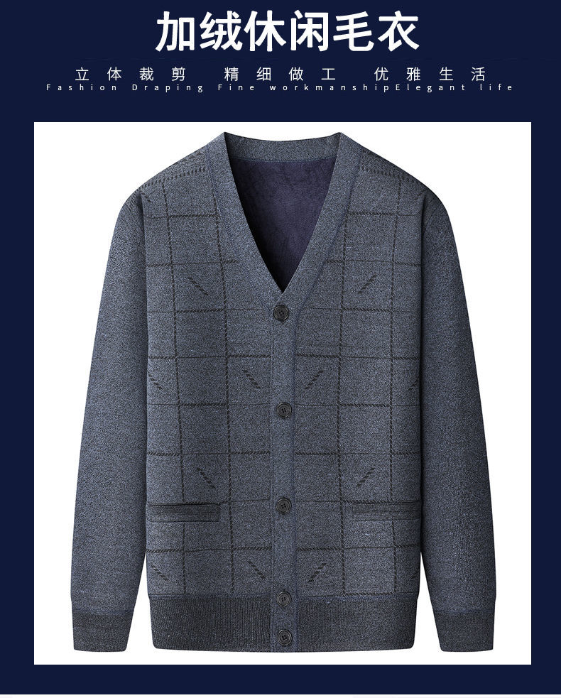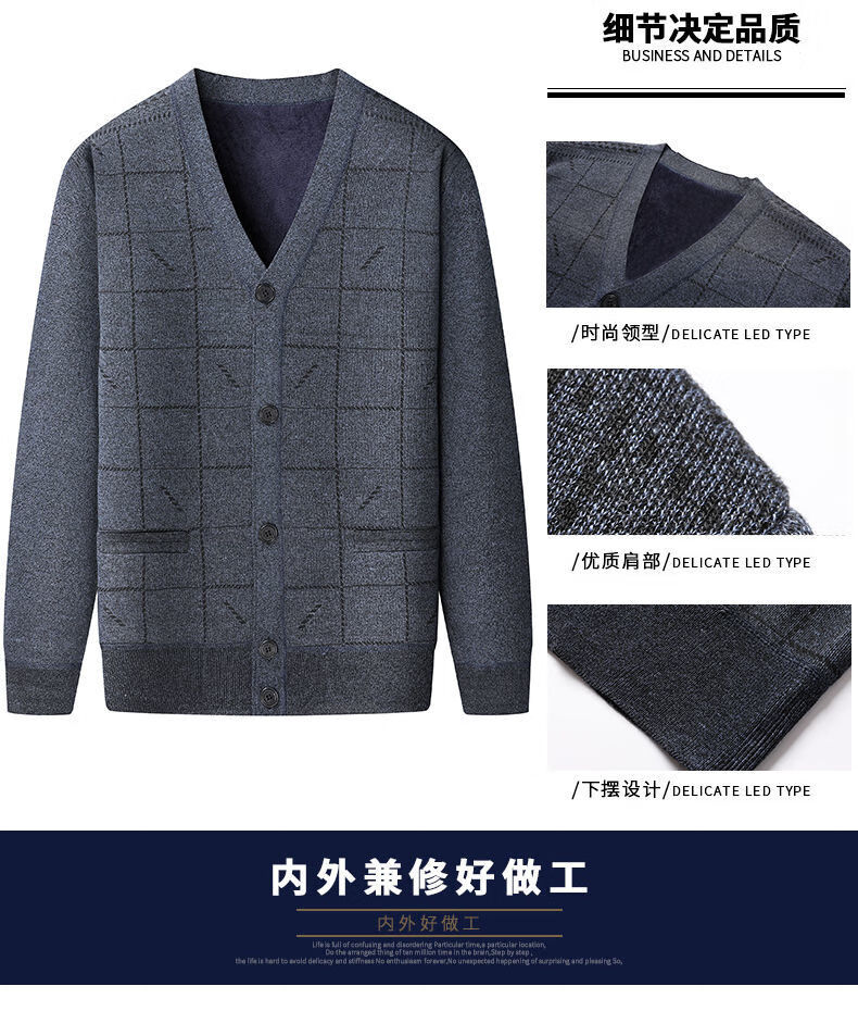 Hengyuanxiang (HYX) middle-aged and elderly men's sweater cardigan autumn and winter dad wear plus velvet thickened sweater top grandpa warm jacket high-end brand special price off code blue gray cardigan plus velvet high-end brand special price off code 3XL suitable for 145-165 Jin Jin equals 0.5 kg