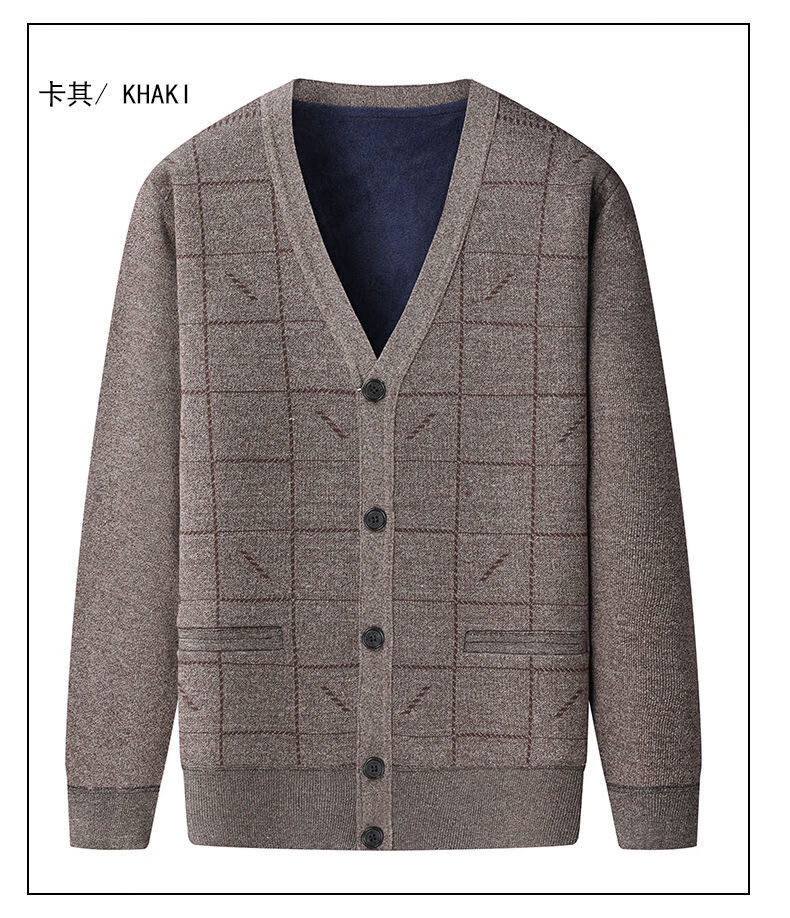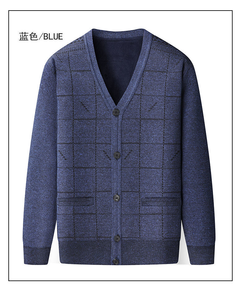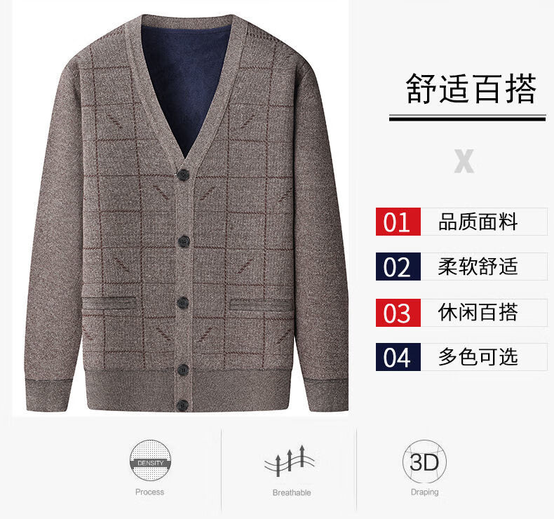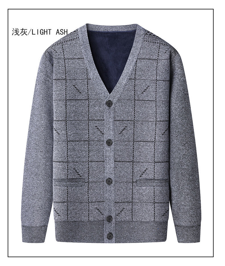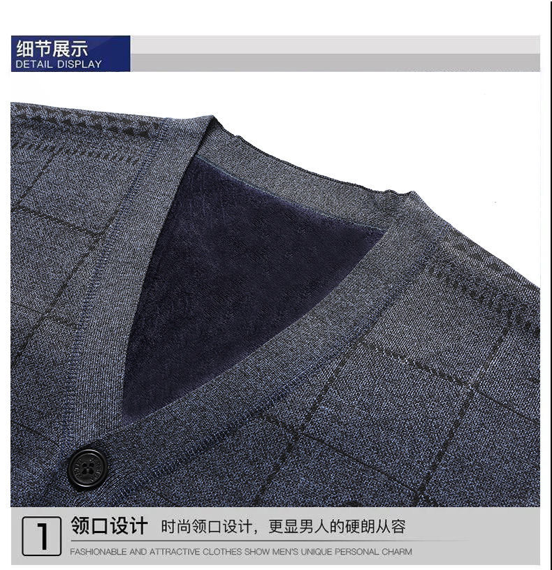 Hengyuanxiang (HYX) middle-aged and elderly men's sweater cardigan autumn and winter dad wear plus velvet thickened sweater top grandpa warm jacket high-end brand special price off code blue gray cardigan plus velvet high-end brand special price off code 3XL suitable for 145-165 Jin Jin equals 0.5 kg