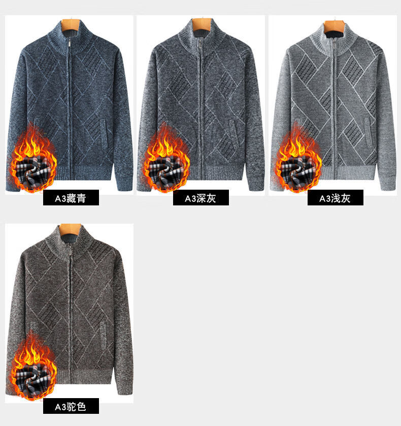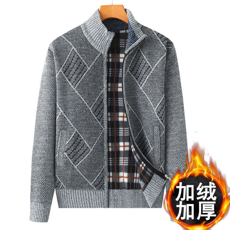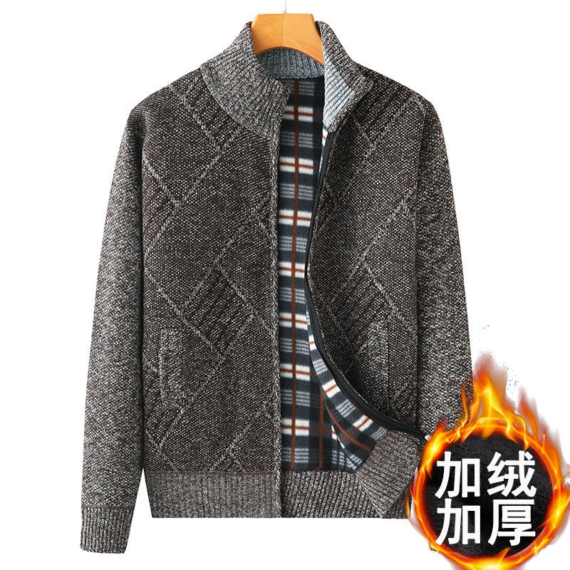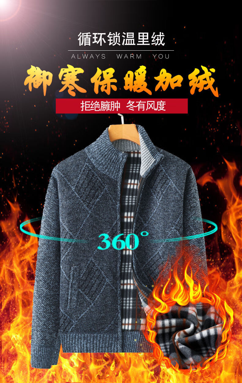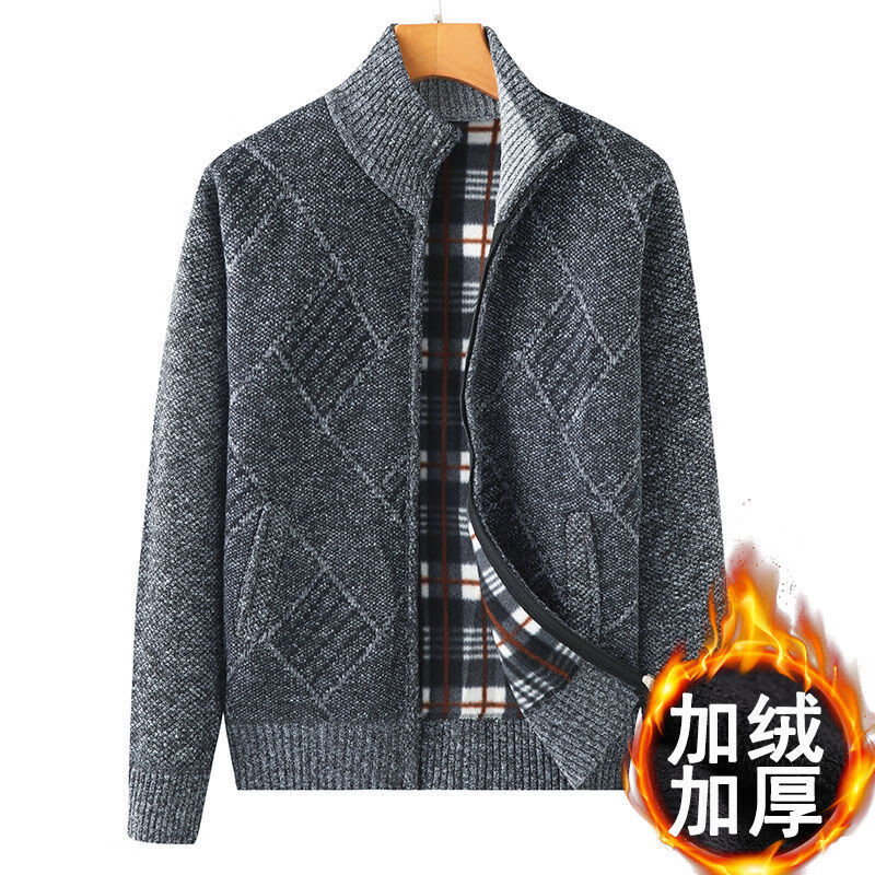 Hengyuanxiang (HYX) middle-aged and elderly men's velvet thickened sweater cardigan for the elderly and grandpa knitted sweater coat loose large size warm dad wear high-end brand special price broken code dark gray high-end brand special price broken code 180/96A