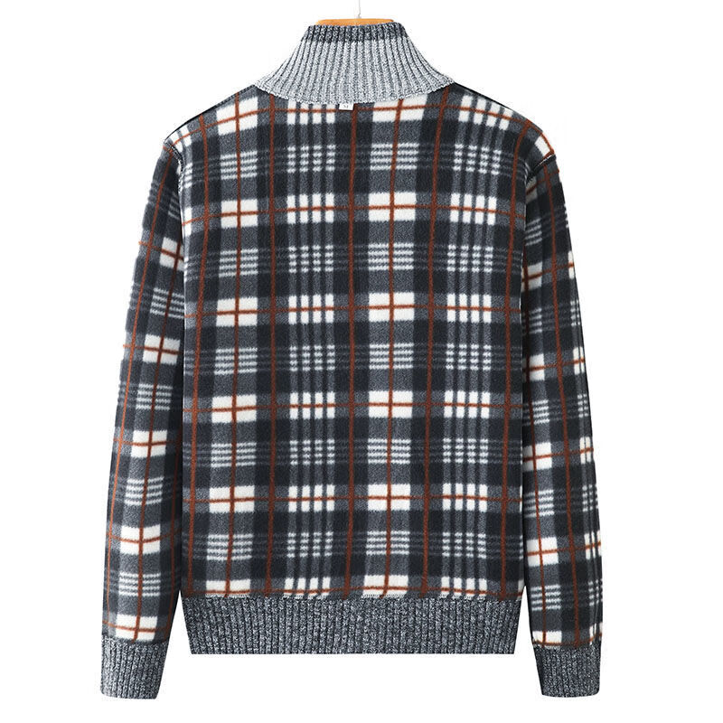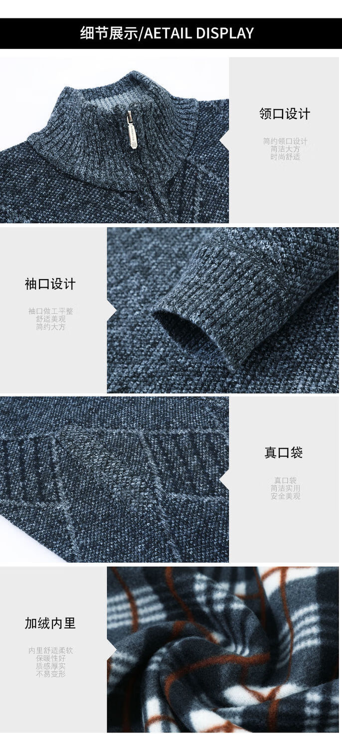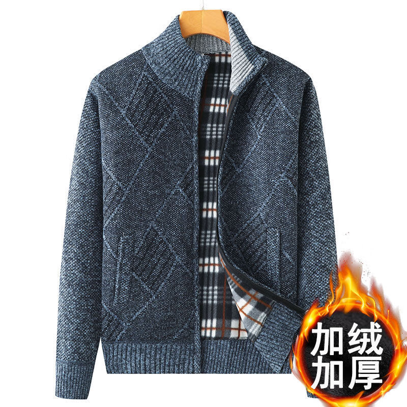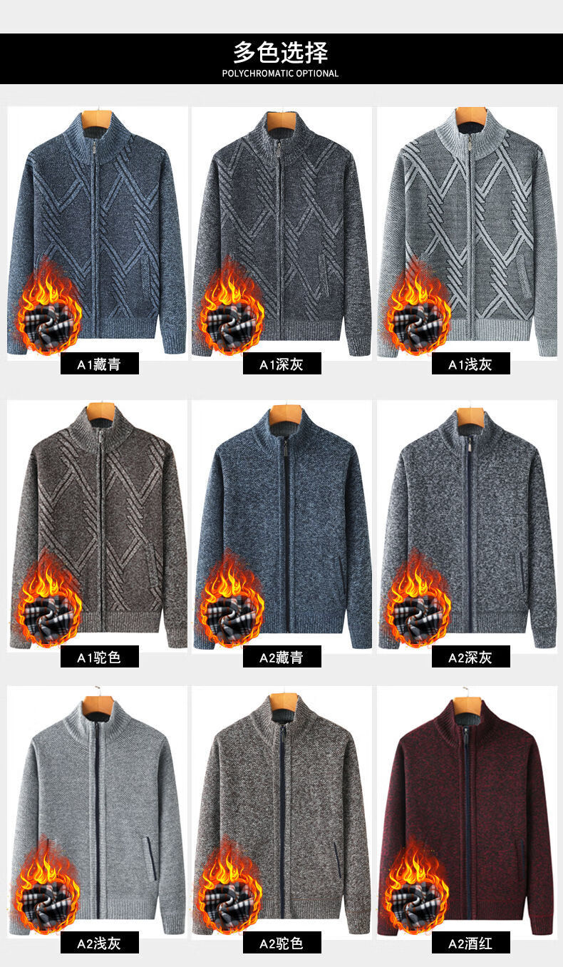 Hengyuanxiang (HYX) middle-aged and elderly men's velvet thickened sweater cardigan for the elderly and grandpa knitted sweater coat loose large size warm dad wear high-end brand special price broken code dark gray high-end brand special price broken code 180/96A