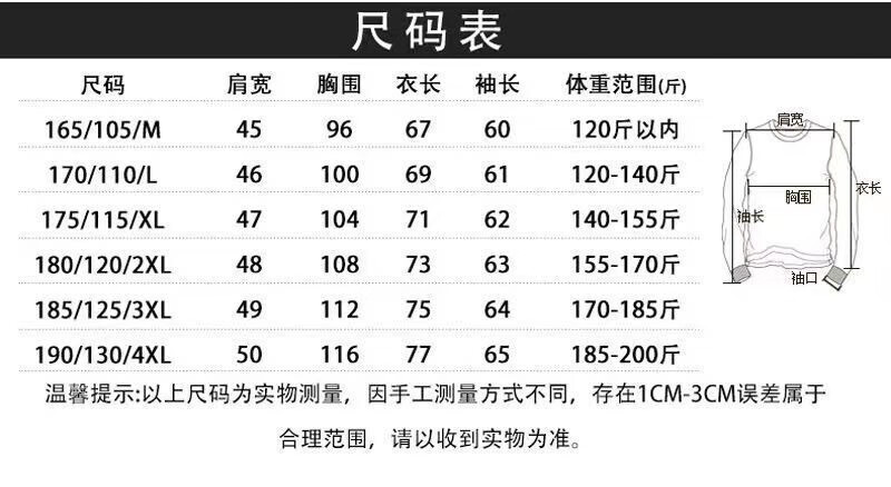 China (cm) 165 / 88-90 170 / 96-98 175 / 108-110 180 / 118-122 185 / 126-130