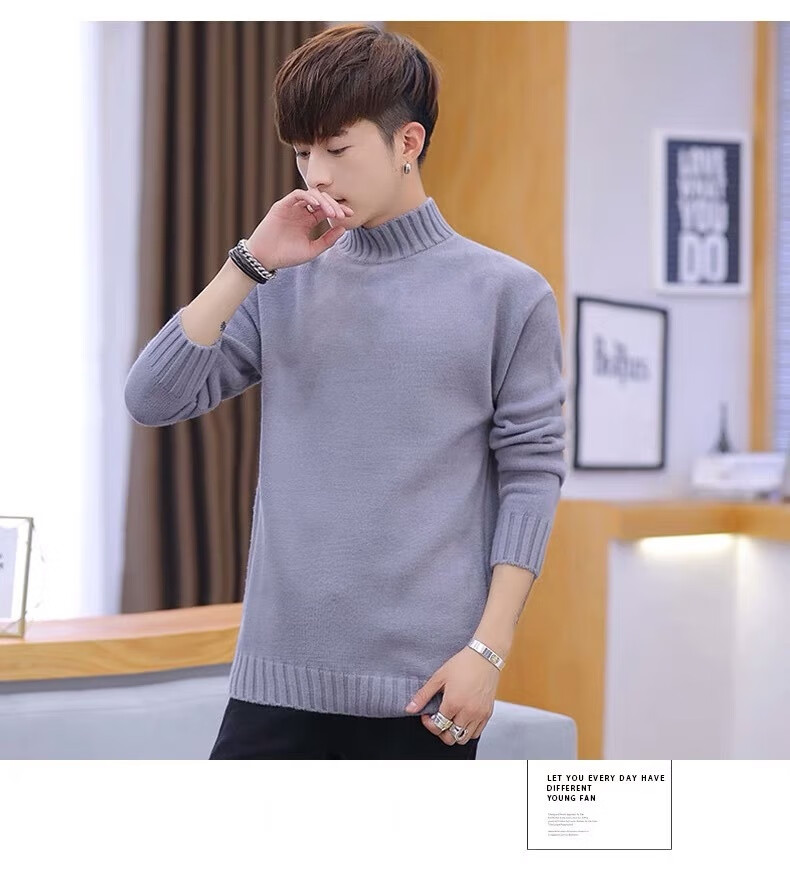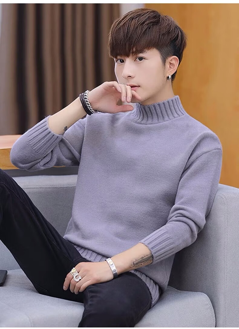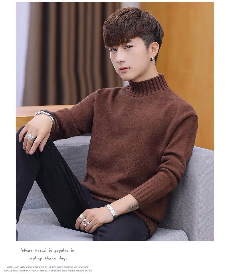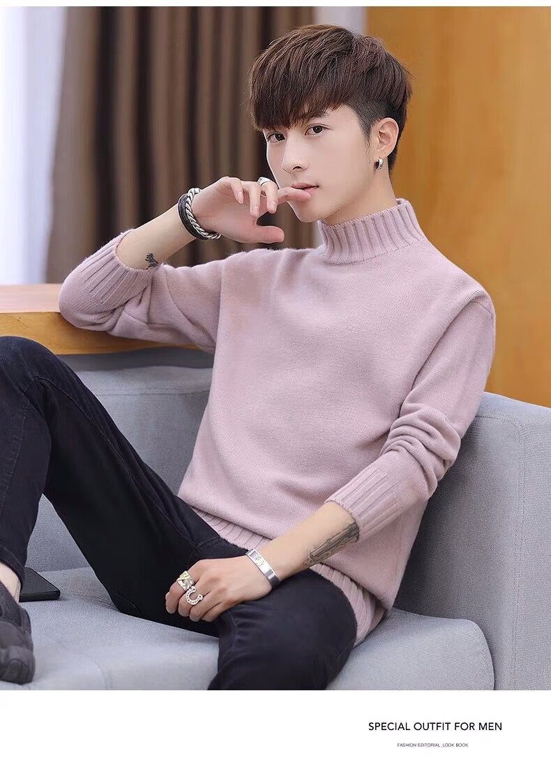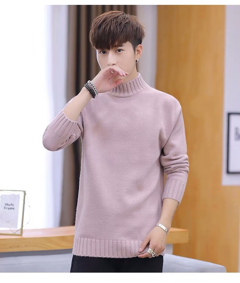 Hengyuanxiang (HYX) velvet thickened half-high collar sweater for men winter new Korean version solid color slim youth fashion bottoming knitted high-end brand special price off code 8826 leather pink plus velvet high-end brand special price off code 3XL 148-160Jin Jin is equal to 0.5 kg