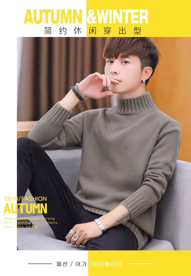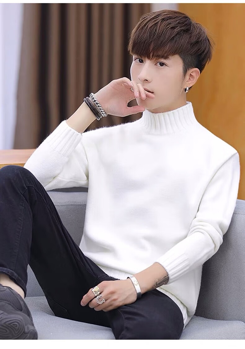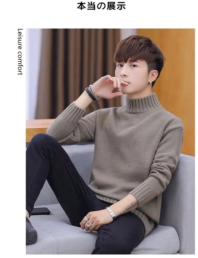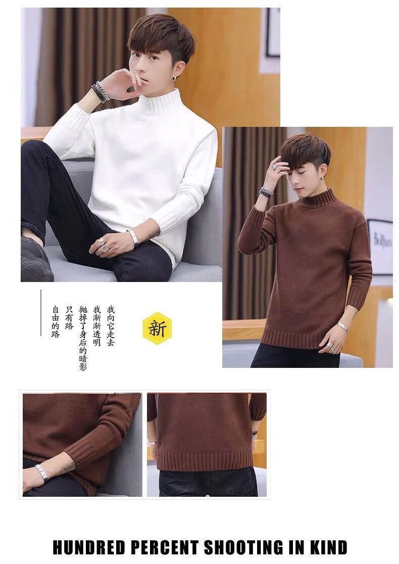 Hengyuanxiang (HYX) velvet thickened half-high collar sweater for men winter new Korean version solid color slim youth fashion bottoming knitted high-end brand special price off code 8826 leather pink plus velvet high-end brand special price off code 3XL 148-160Jin Jin is equal to 0.5 kg