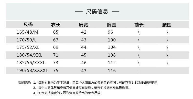 China (cm) 165 / 88-90 170 / 96-98 175 / 108-110 180 / 118-122 185 / 126-130