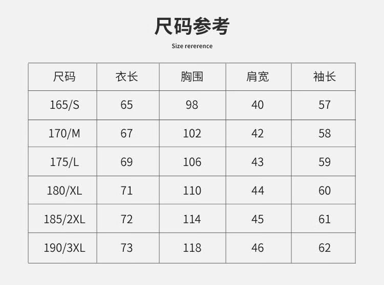 China (cm) 165 / 88-90 170 / 96-98 175 / 108-110 180 / 118-122 185 / 126-130