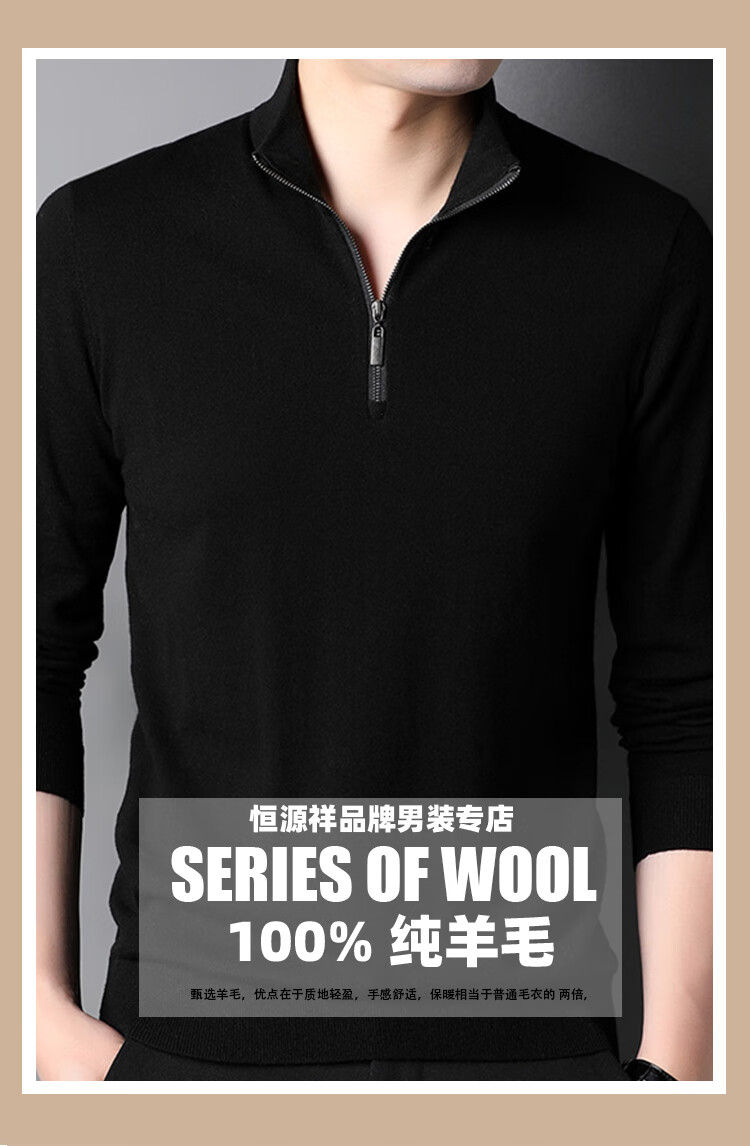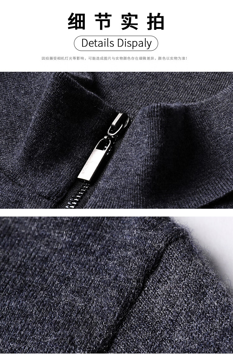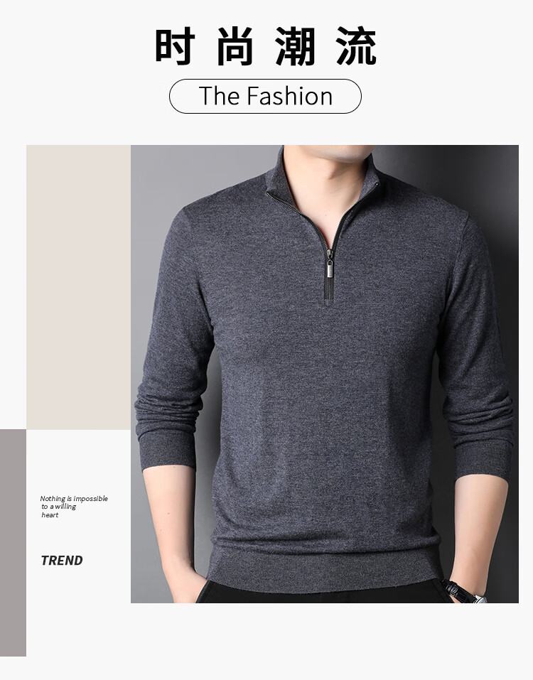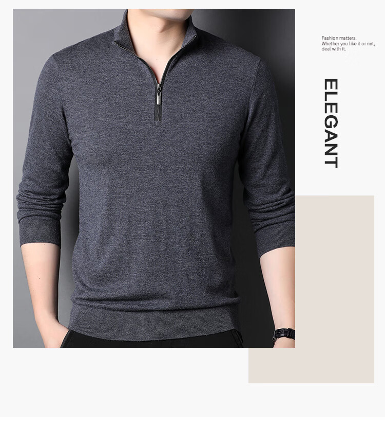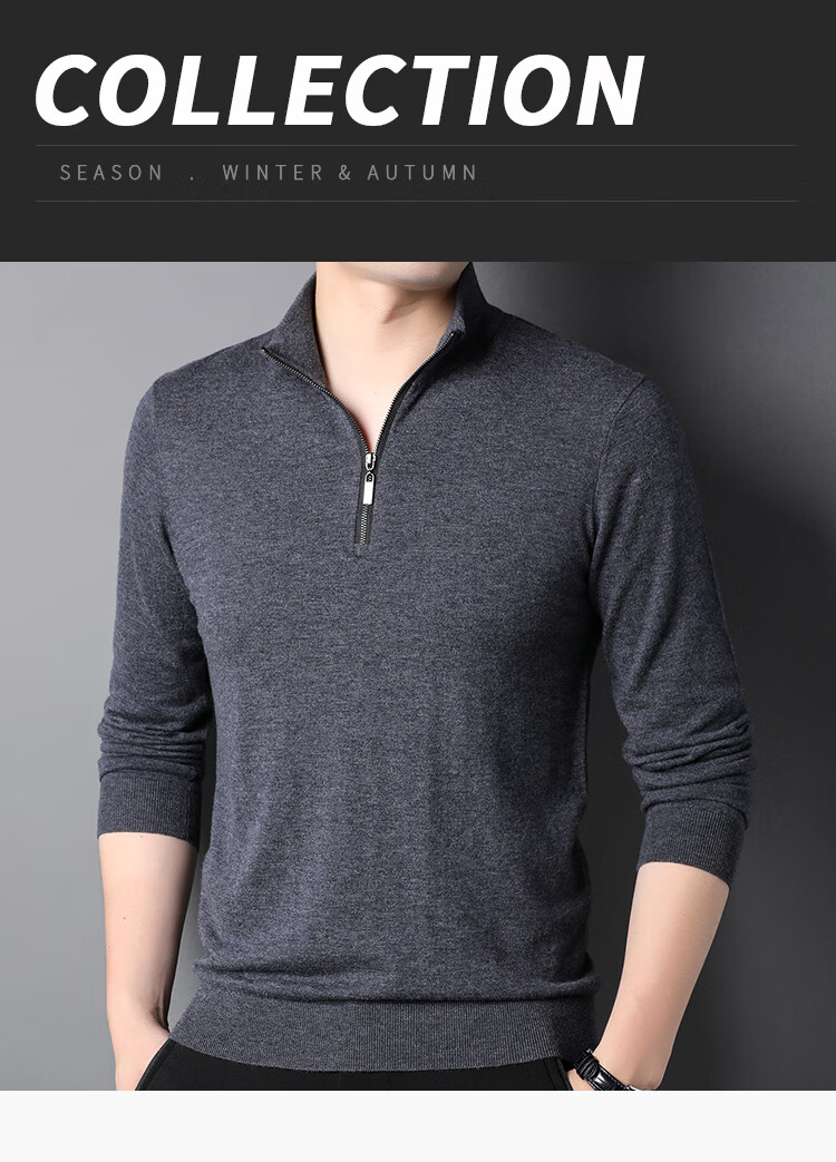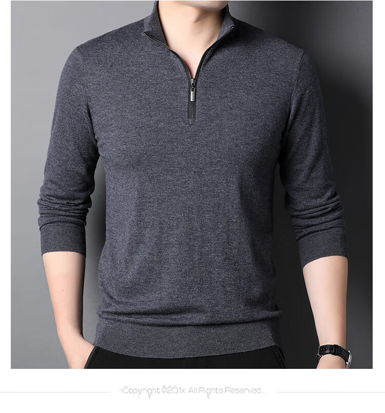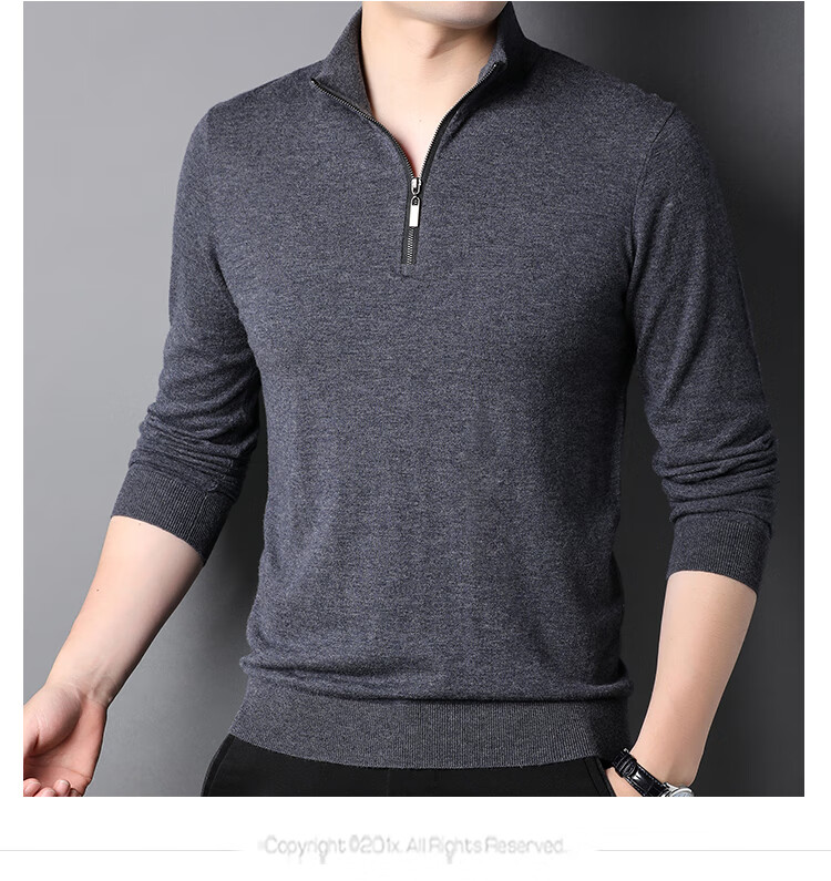 Hengyuanxiang wool sweater men's pure wool autumn clothing new half-high zipper collar dad wear business men's thin sweater Father's Day medium gray 2XL 185 suitable for 155-175Jin Jin equals 0.5 kg
