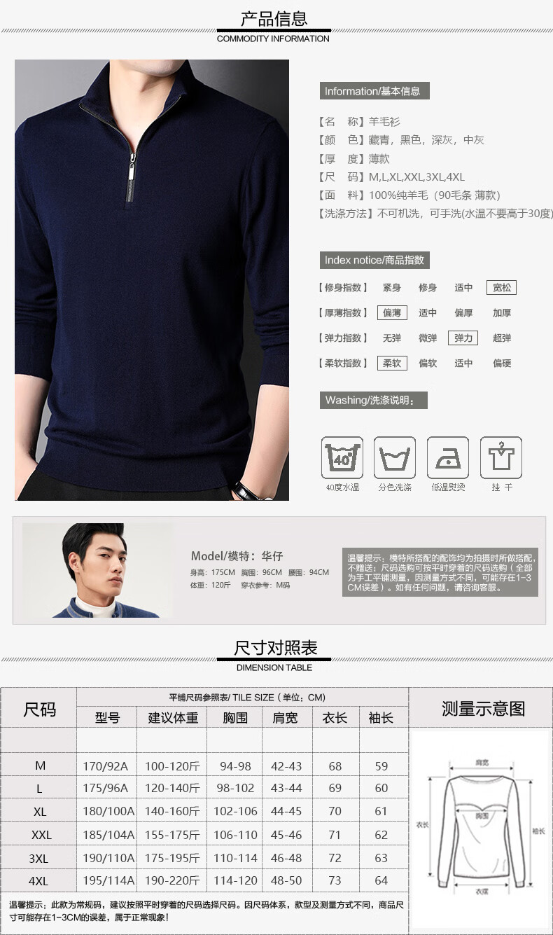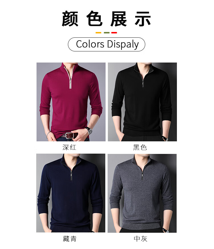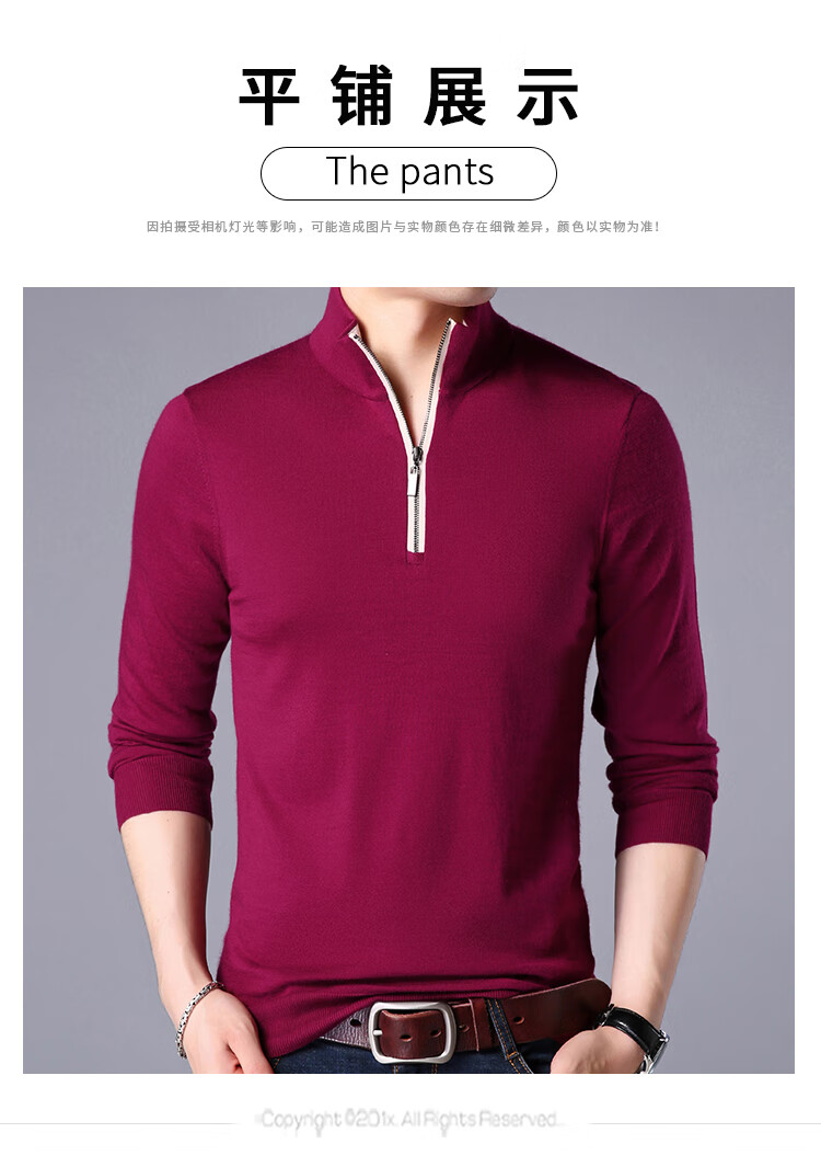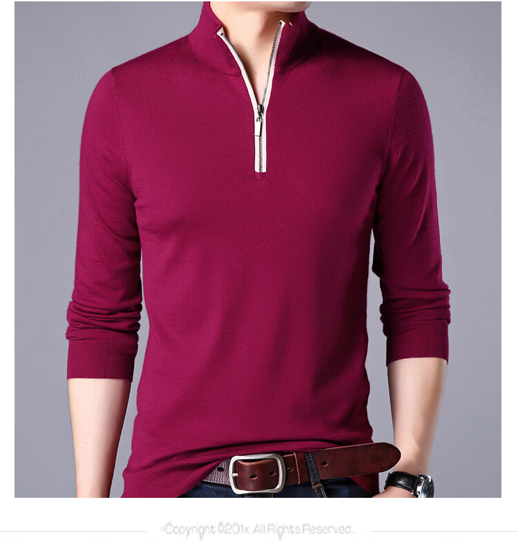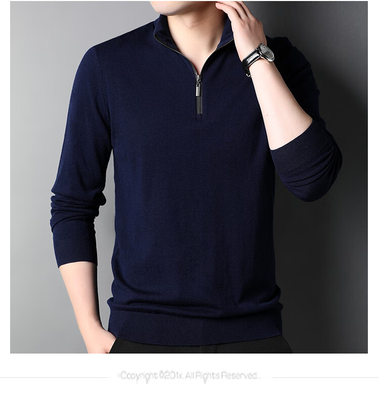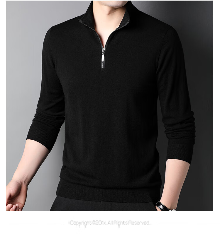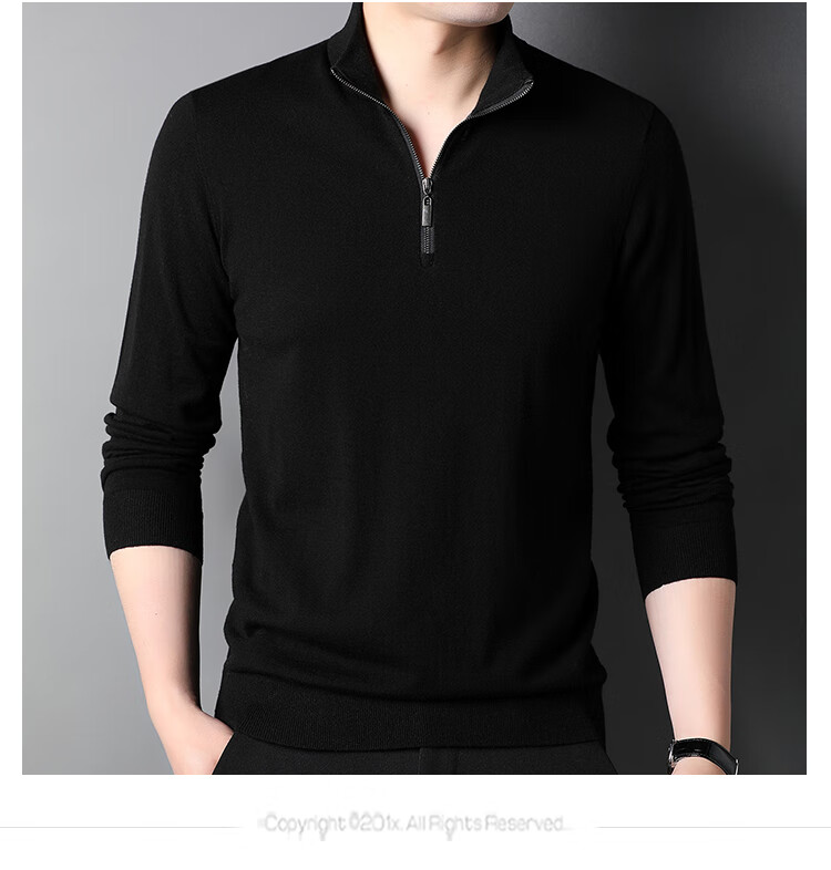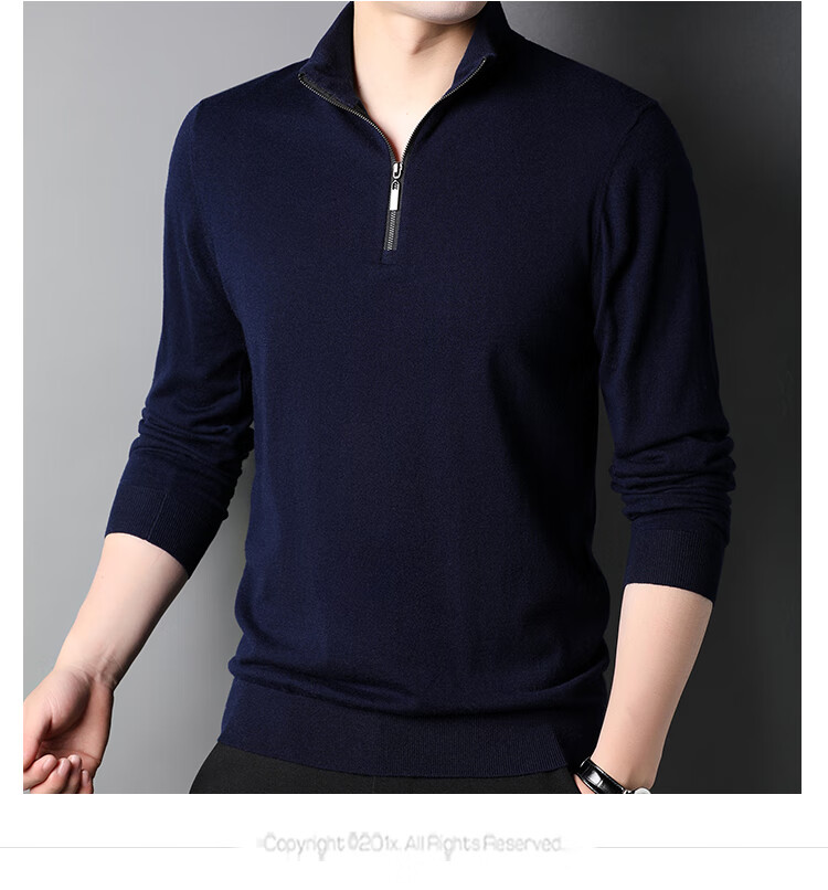 Hengyuanxiang wool sweater men's pure wool autumn clothing new half-high zipper collar dad wear business men's thin sweater Father's Day medium gray 2XL 185 suitable for 155-175Jin Jin equals 0.5 kg