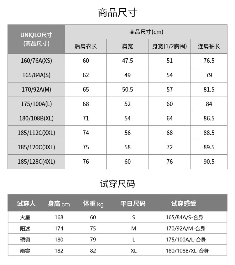 China (cm) 160-165/84-86 165-170 / 88-90 167-172 / 92-96 168-173 / 98-102 170-176 / 106-110