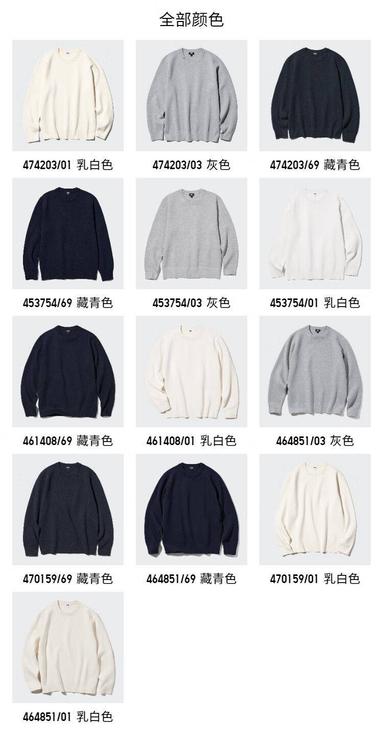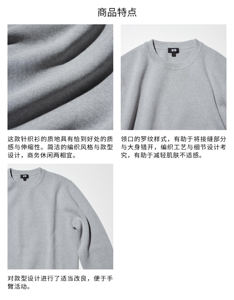 Uniqlo carnival price men's and women's ribbed crew neck sweater long-sleeved sweater 474203 470159 474203/03 gray L