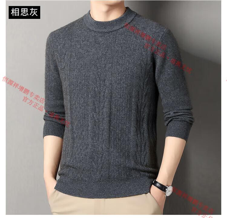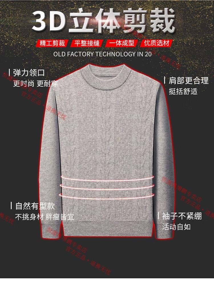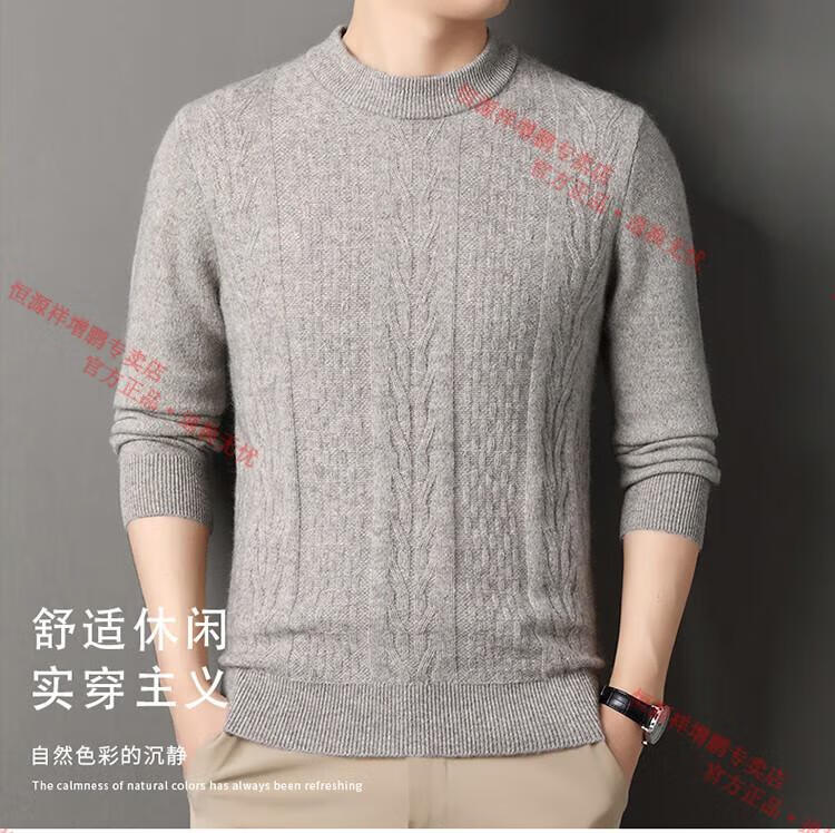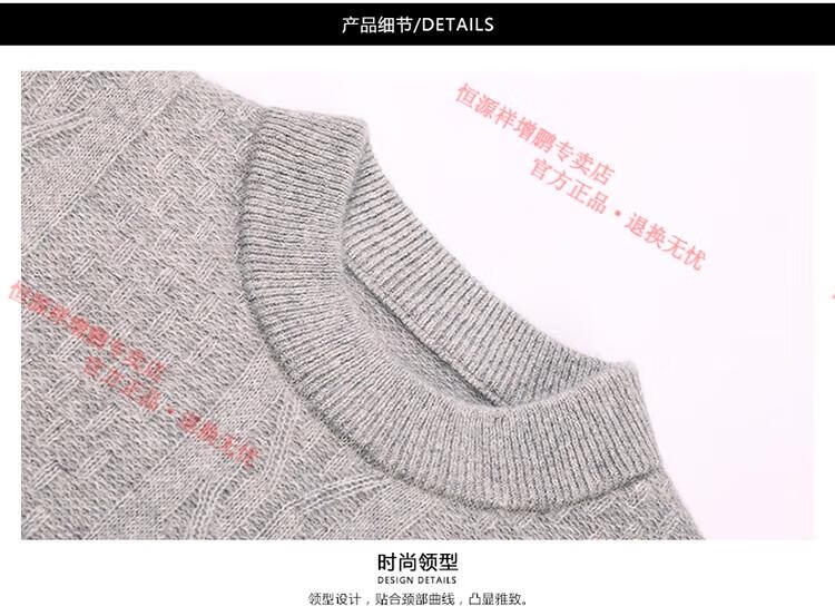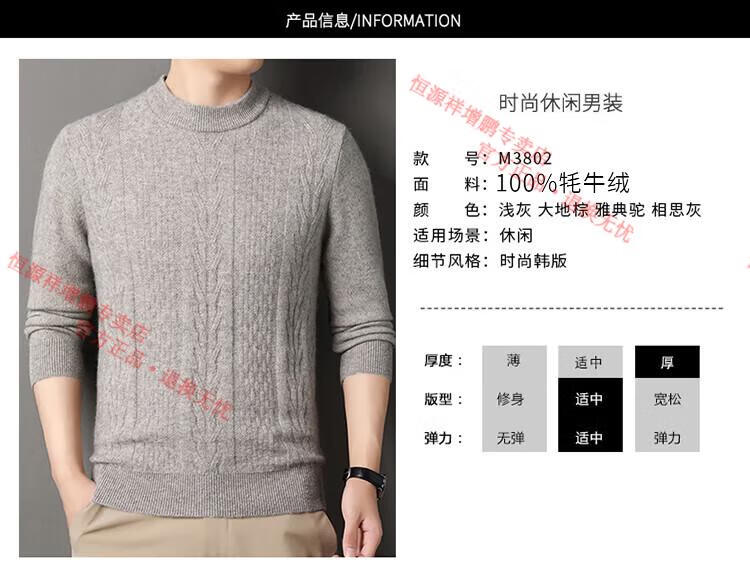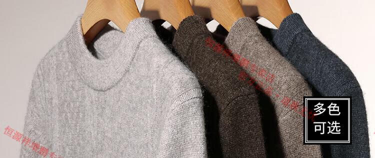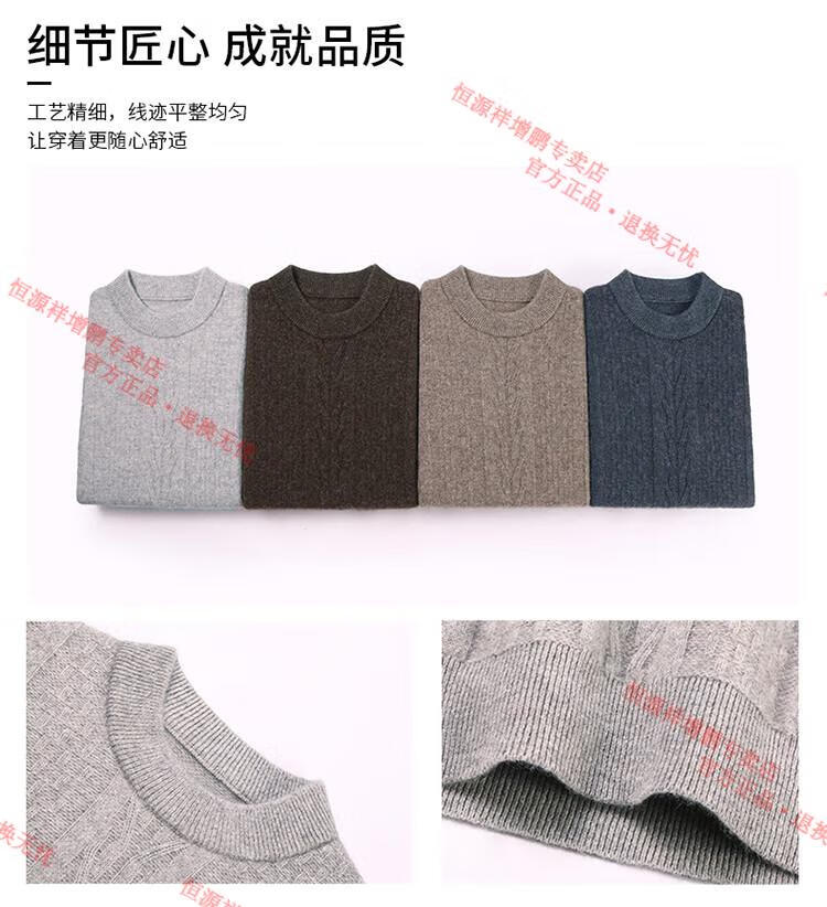 Hengyuanxiang thickened half turtleneck 100% yak wool sweater men's jacquard pullover sweater autumn and winter middle-aged warm base layer light gray 4XL