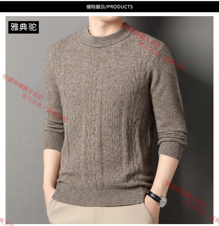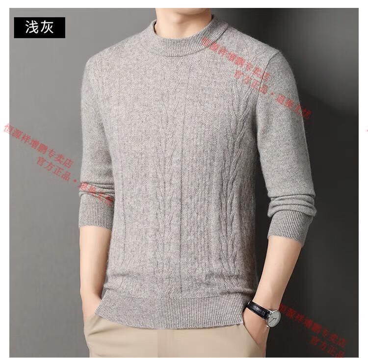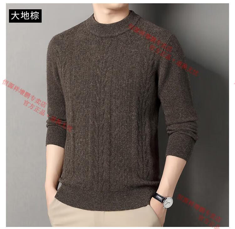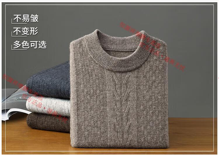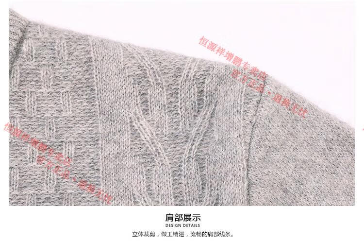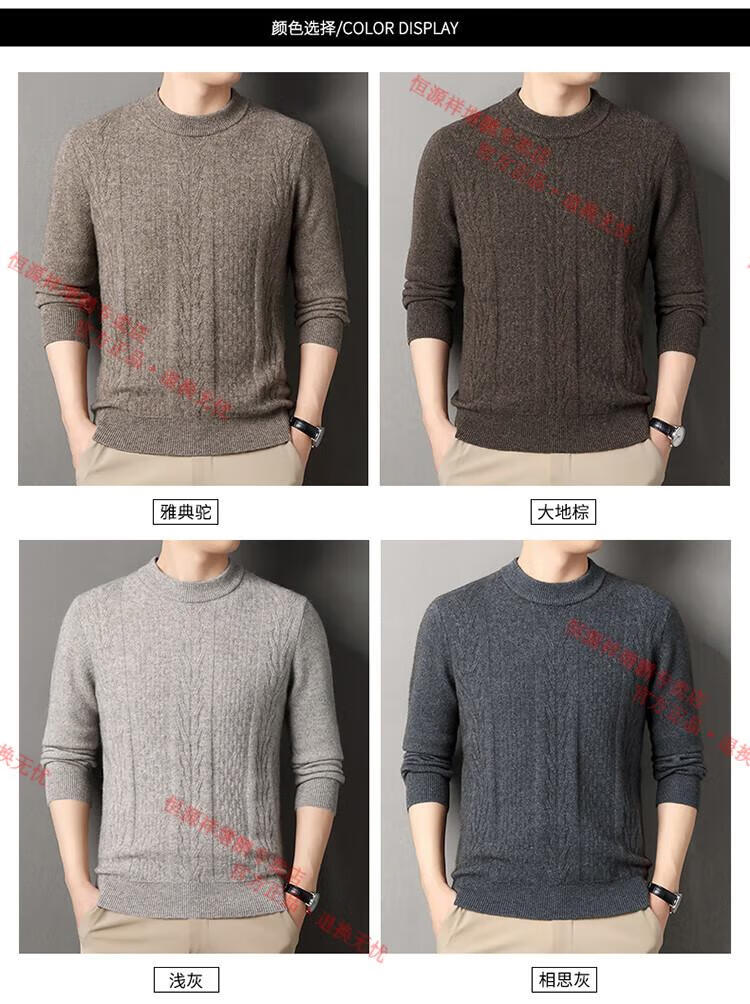 Hengyuanxiang thickened half turtleneck 100% yak wool sweater men's jacquard pullover sweater autumn and winter middle-aged warm base layer light gray 4XL