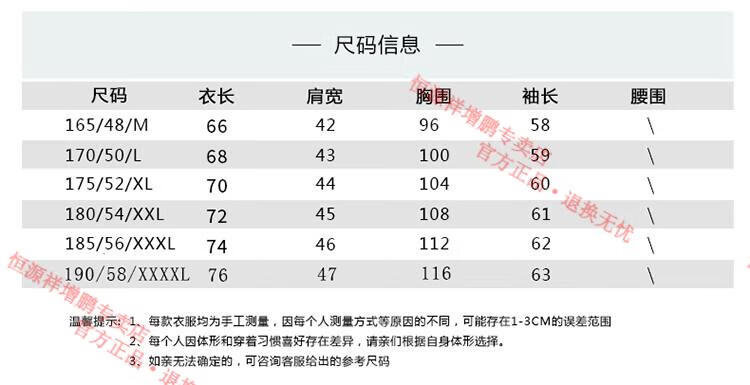 China (cm) 165 / 88-90 170 / 96-98 175 / 108-110 180 / 118-122 185 / 126-130