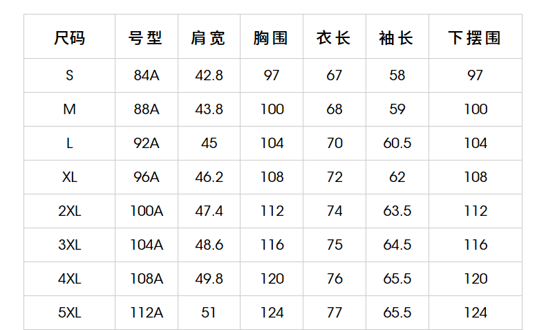 China(cm) 72-76 76-81 81-87 87-93 93-98