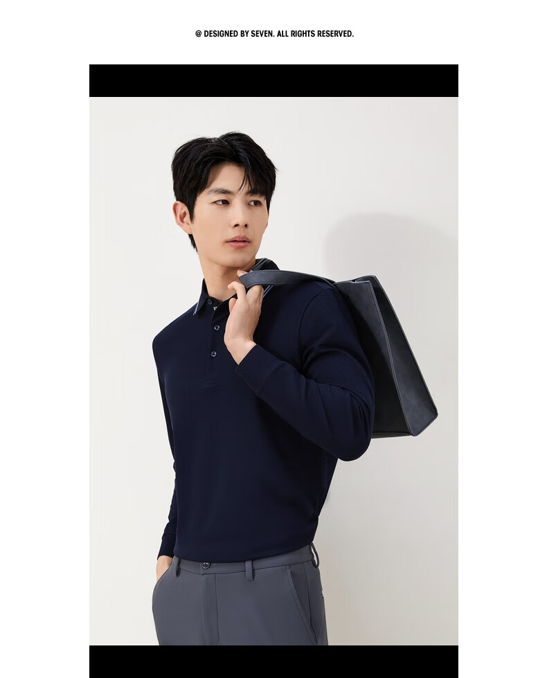 Qipai 7A antibacterial/2A antimite/antistatic men's long-sleeved polo shirt 25 autumn business casual top