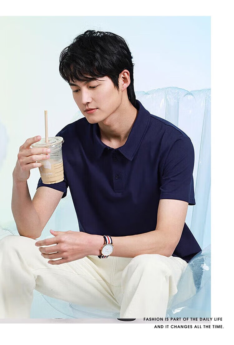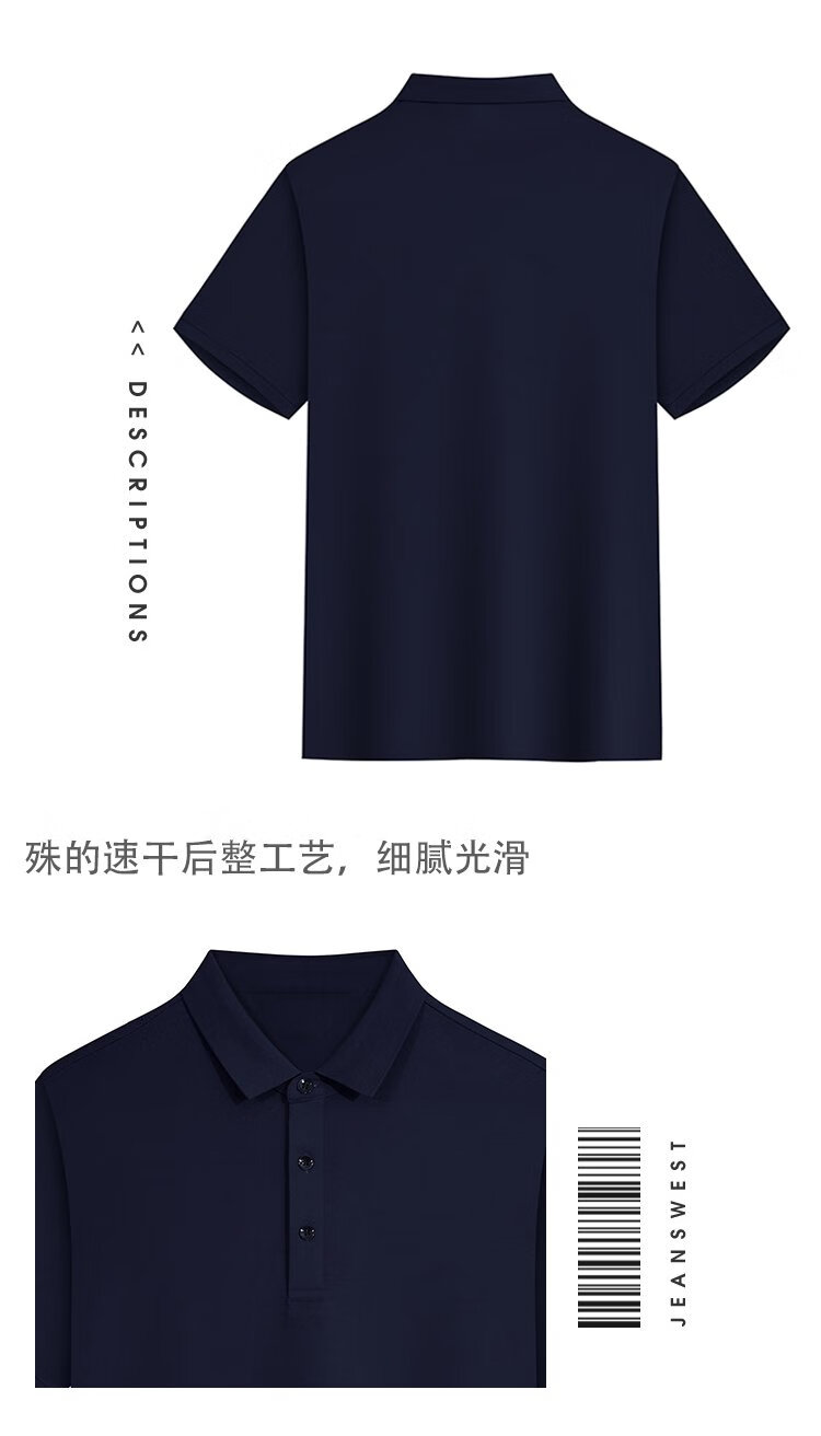 JEANSWEST Polo shirt for men 2025 summer thin antibacterial quick-drying loose short-sleeved casual cool breathable solid color black XL