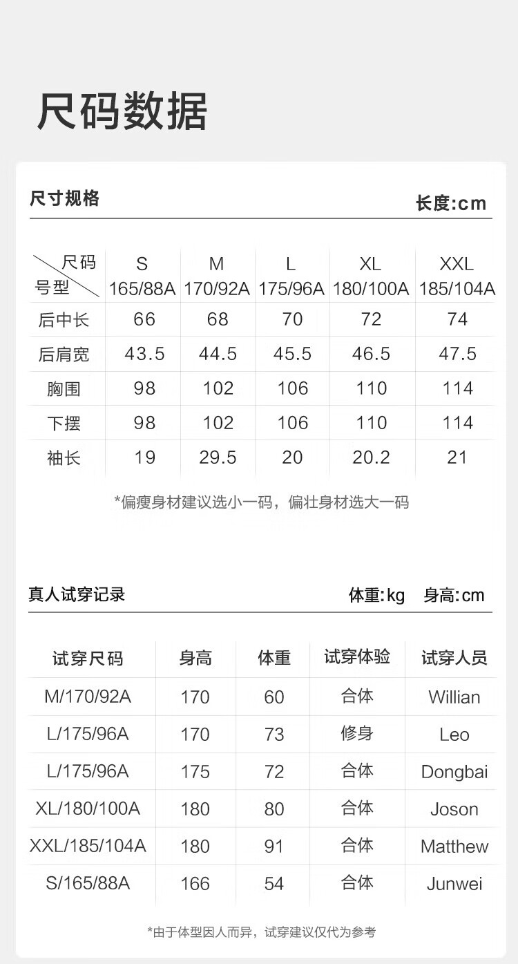China (cm) 165 / 88-90 170 / 96-98 175 / 108-110 180 / 118-122 185 / 126-130