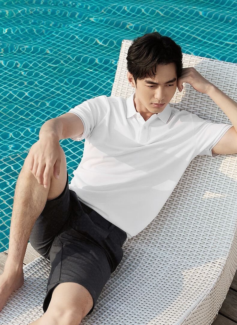Qipai containing mulberry silk Qipai short-sleeved POLO shirt for men summer thin lapel top