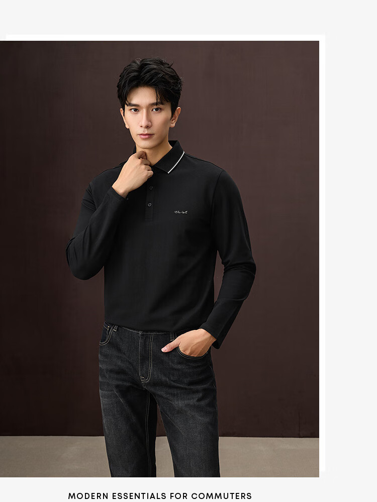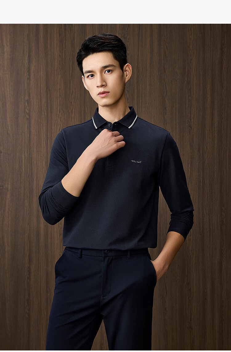 HLA Heilan long-sleeved POLO shirt men's 25 light business fashion lapel long-sleeved men's autumn