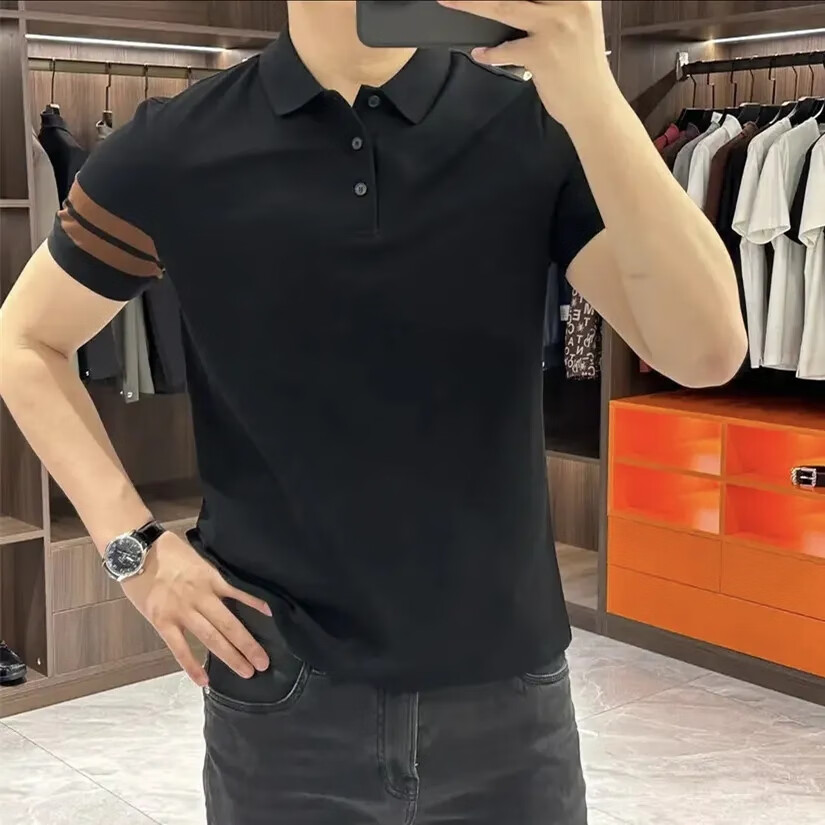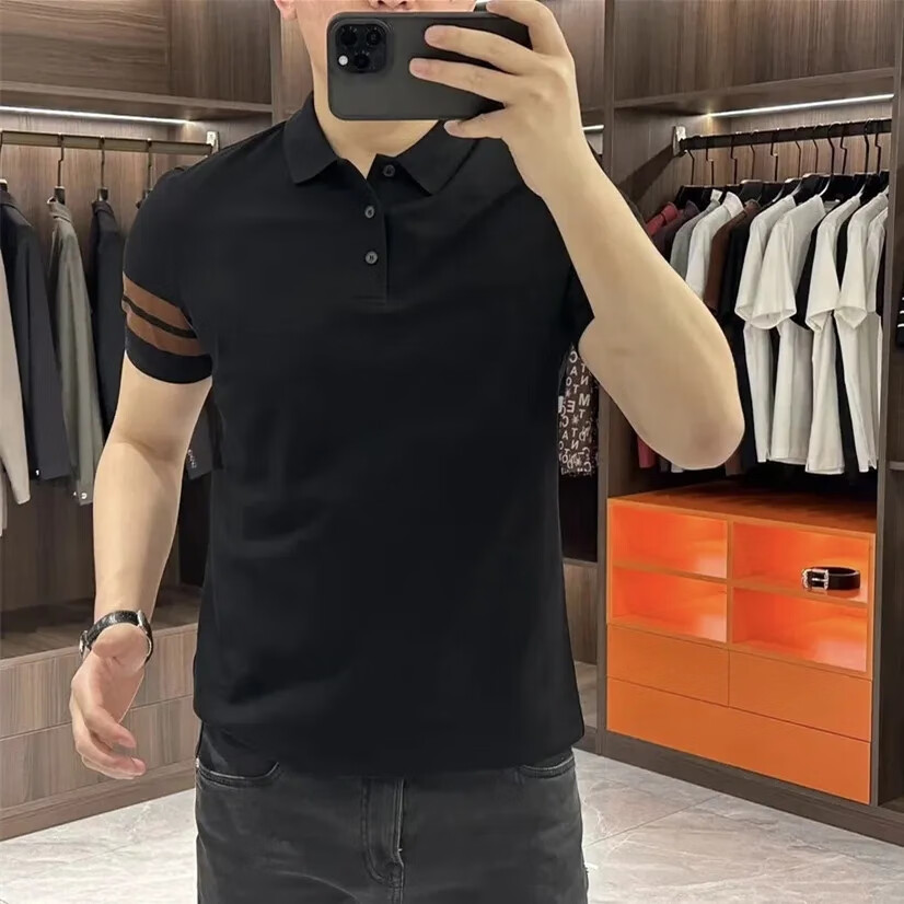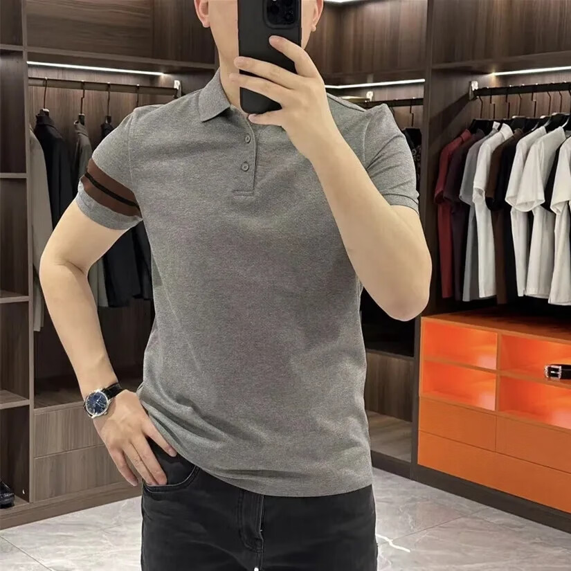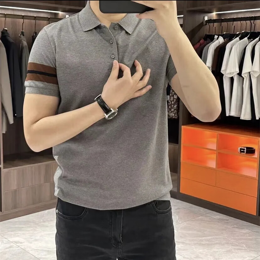 Pierre Cardin European men's short-sleeved polo shirt summer slim lapel T-shirt top business casual splicing Paul Gray XL