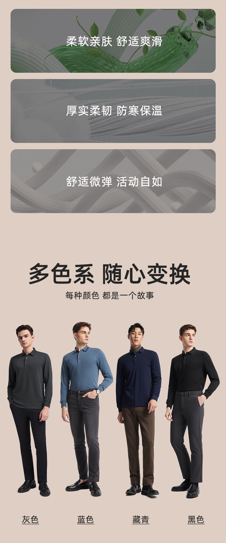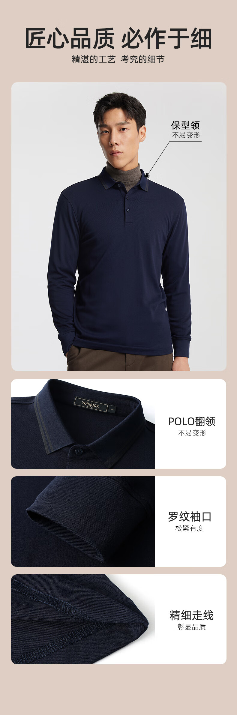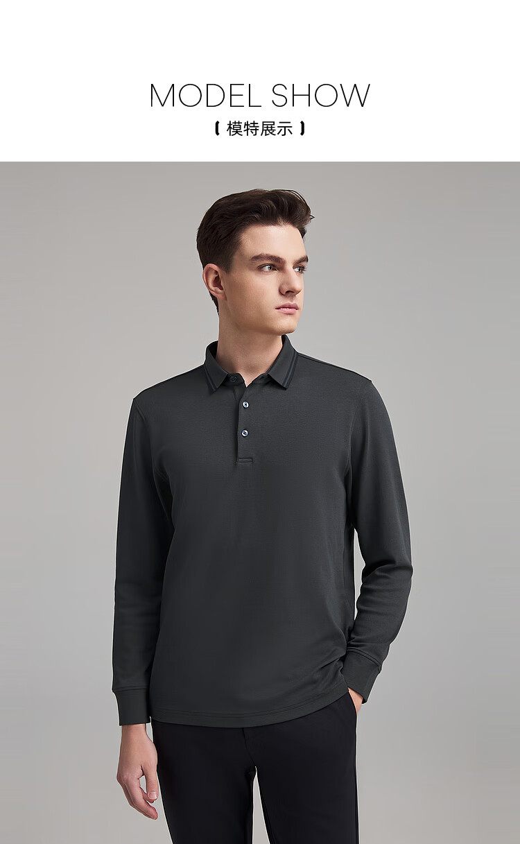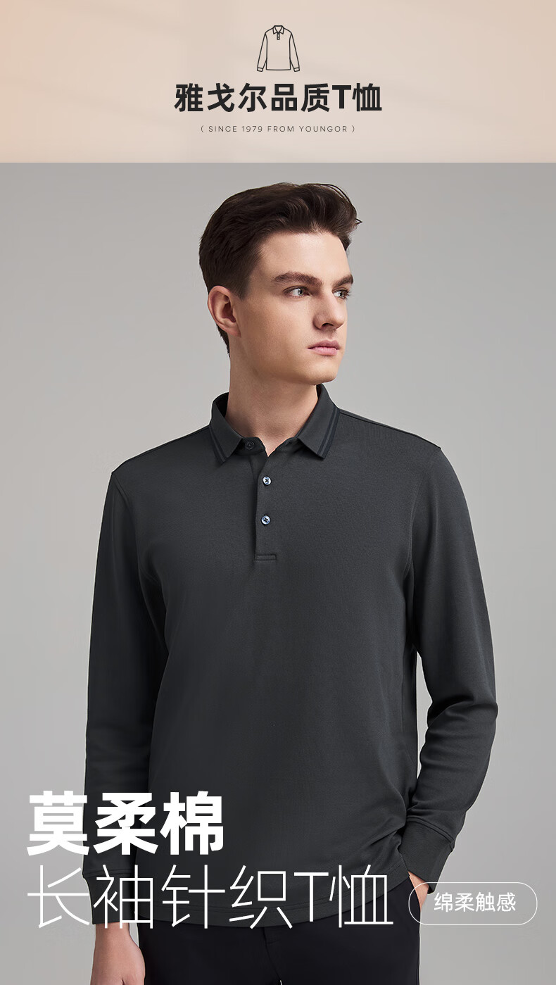 YOUNGOR POLO shirt men's autumn and winter young men's long-sleeved POLO shirt feels delicate and soft gray VLPC539969DCA L