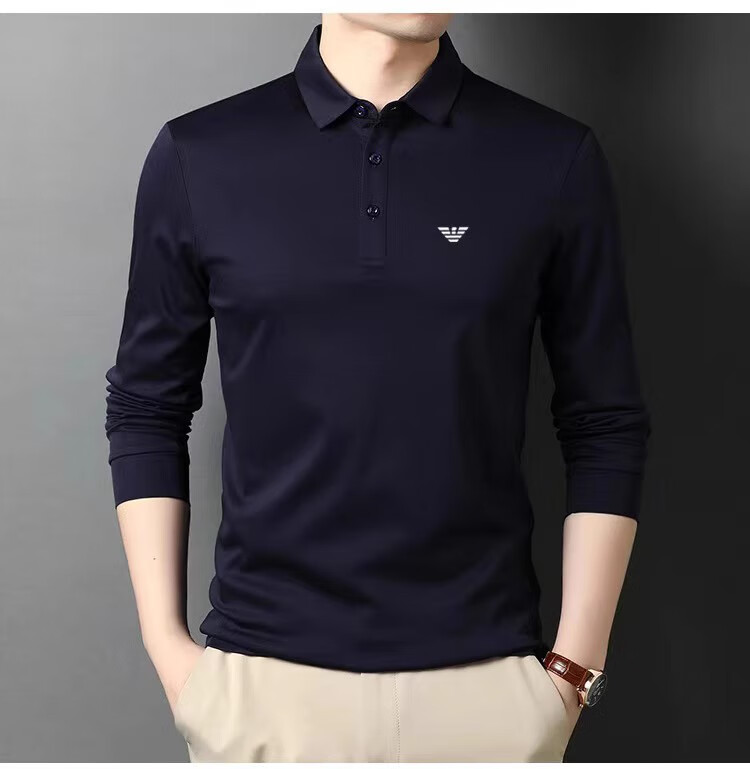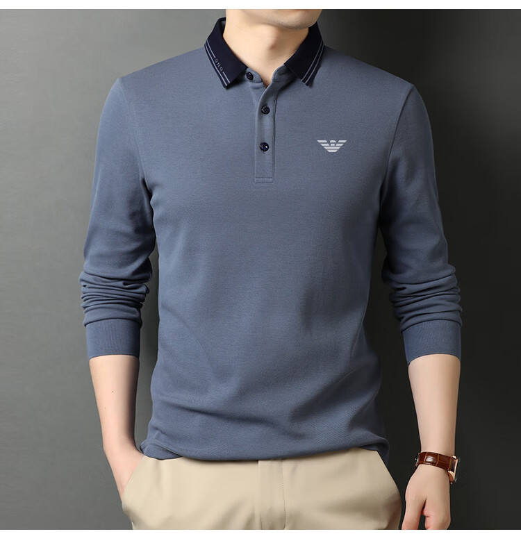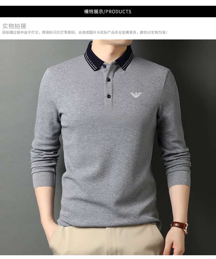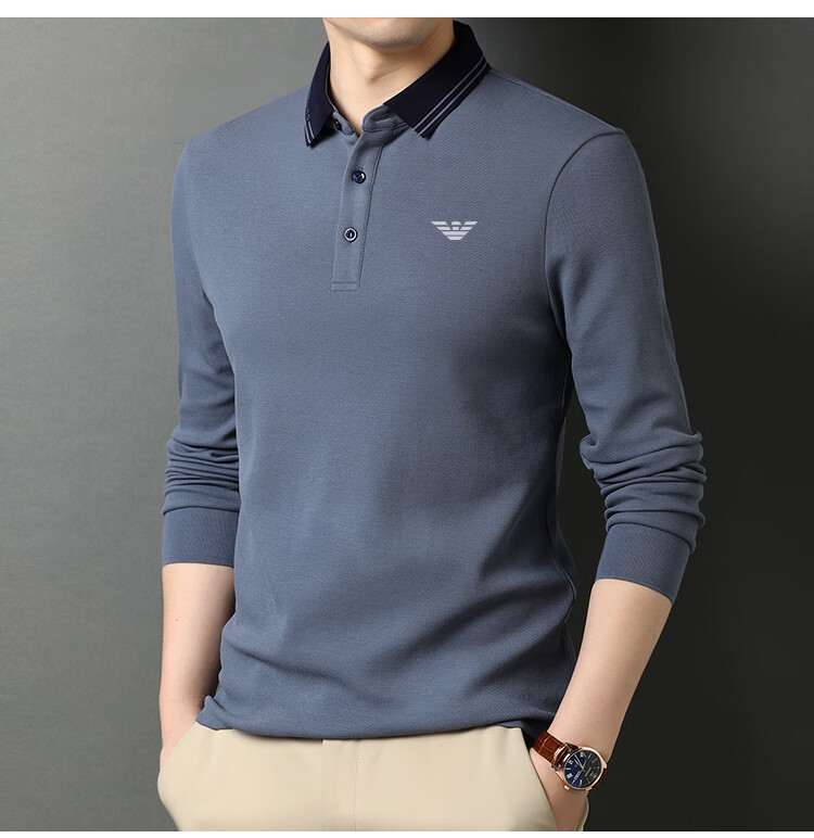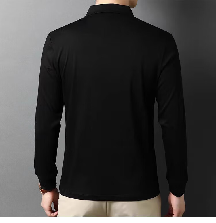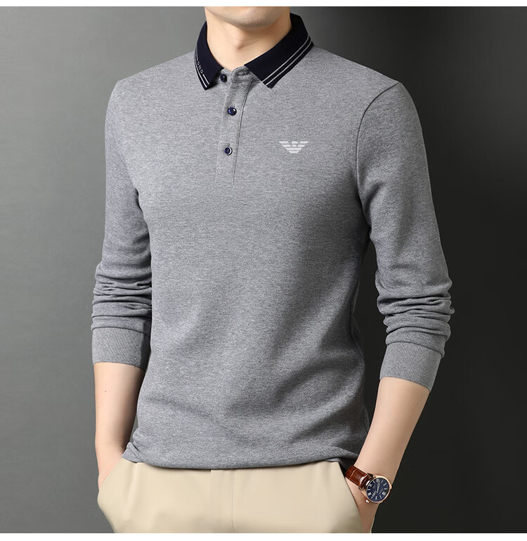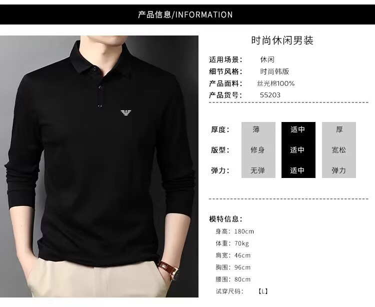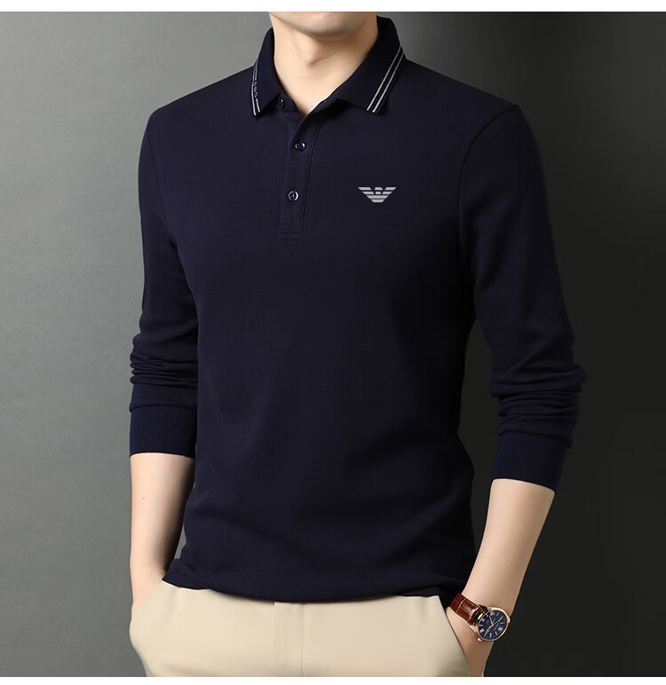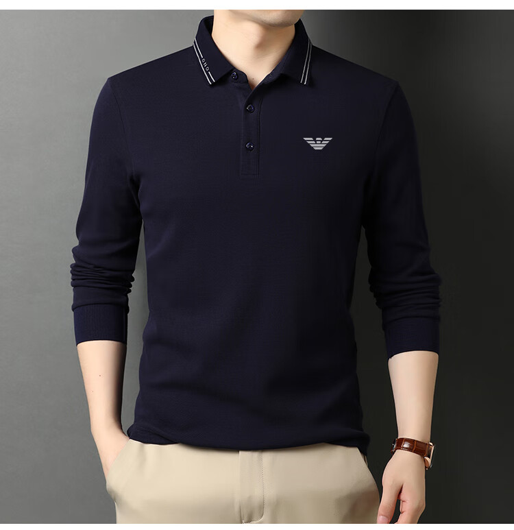 Falai Armani high-end long-sleeved T-shirt men's pure cotton lapel autumn casual business plus velvet warm polo shirt 55155 black L 175/92A suitable for 140-160Jin Jin equals 0.5 kg
