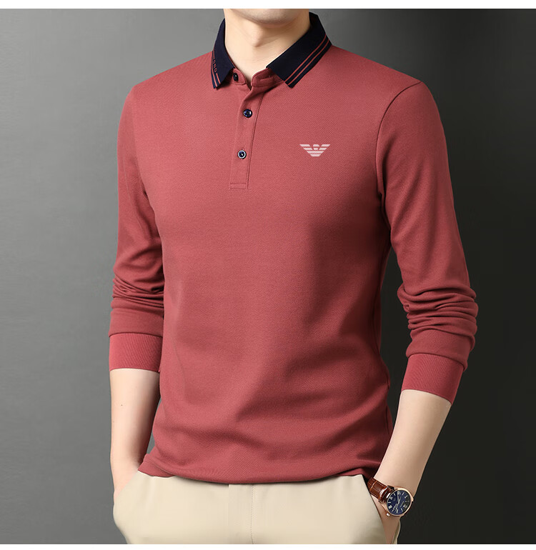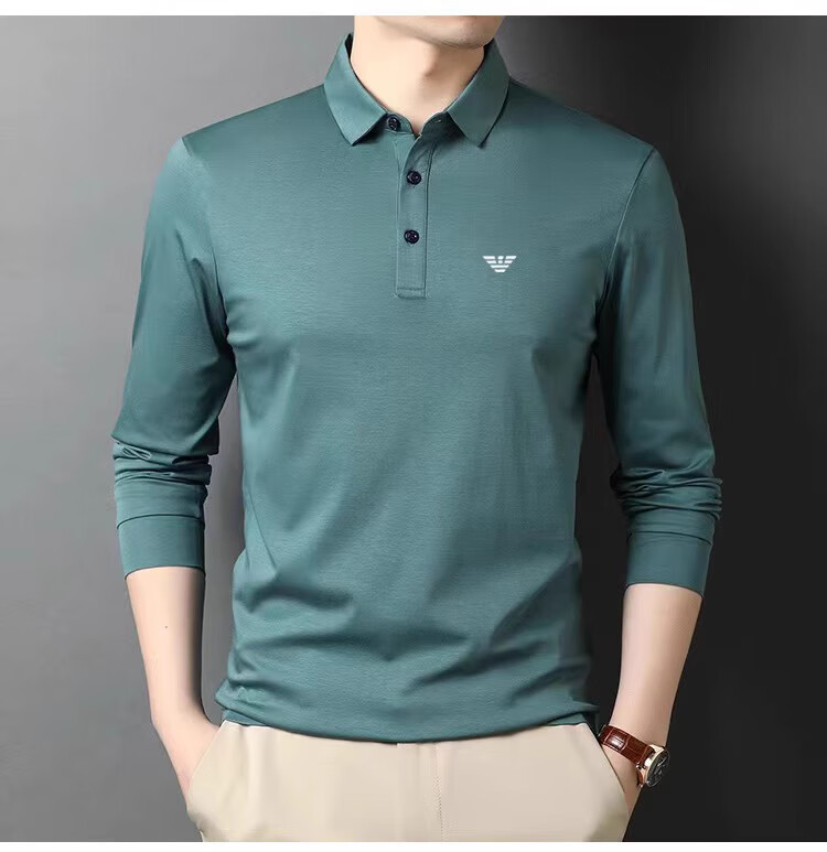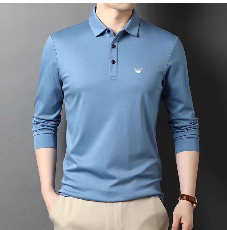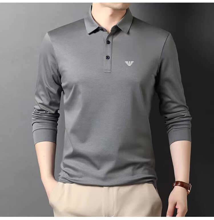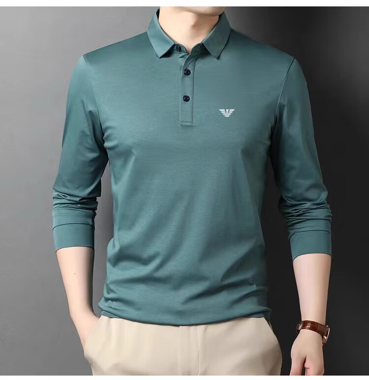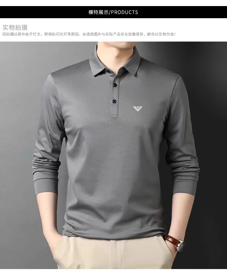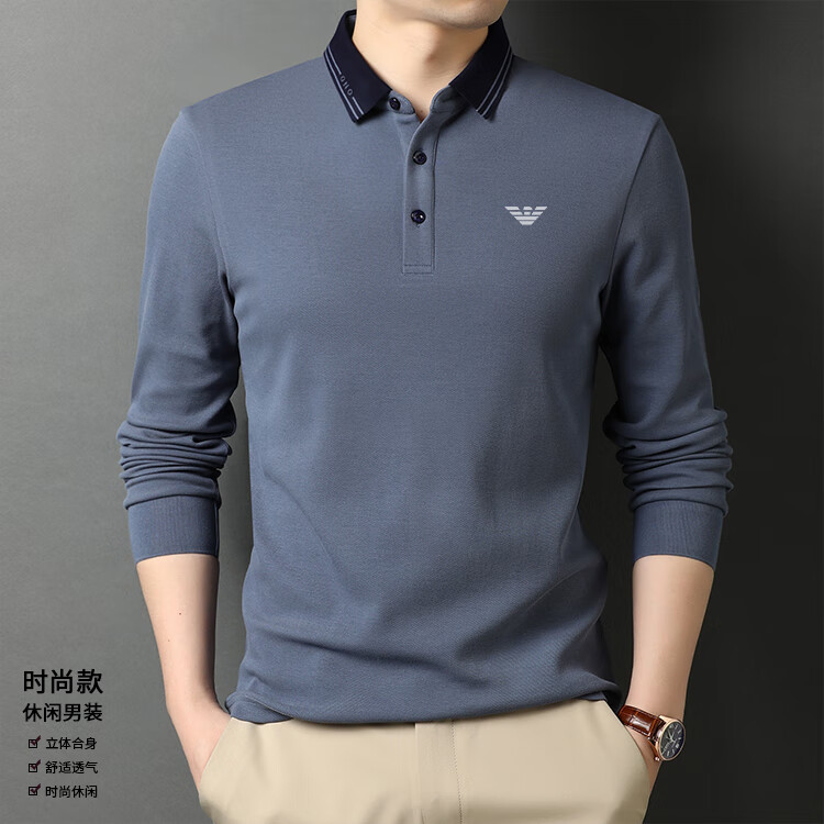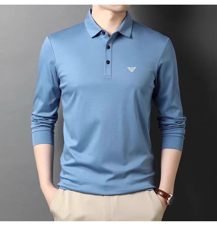 Falai Armani high-end long-sleeved T-shirt men's pure cotton lapel autumn casual business plus velvet warm polo shirt 55155 black L 175/92A suitable for 140-160Jin Jin equals 0.5 kg