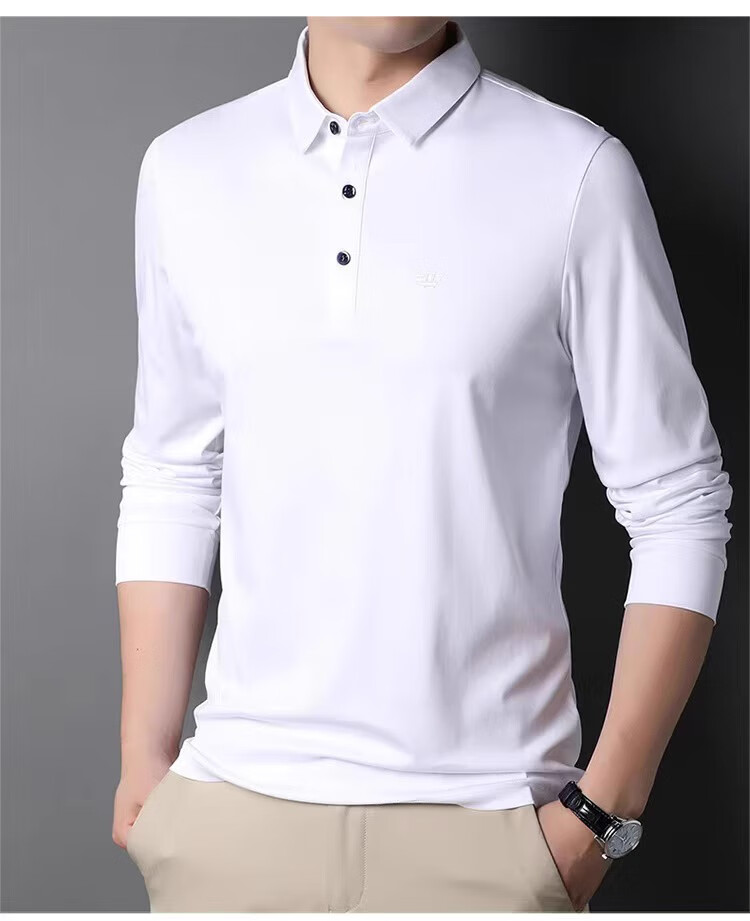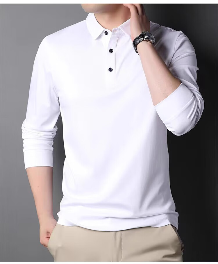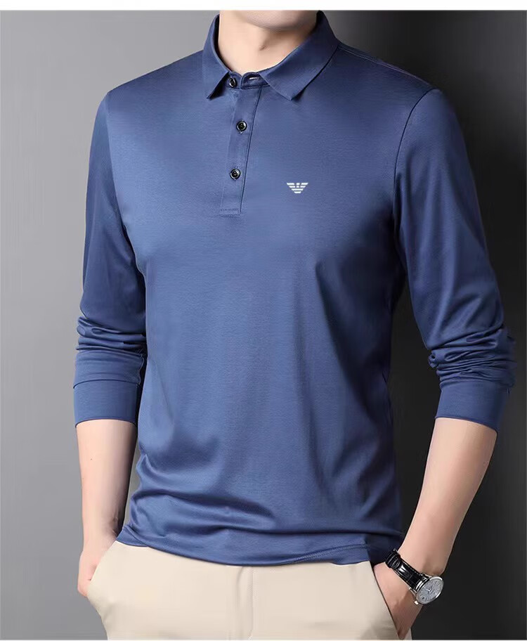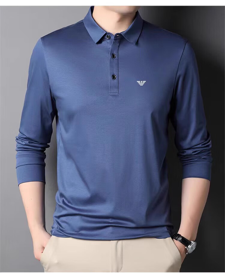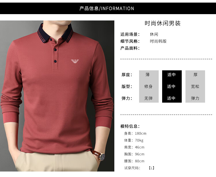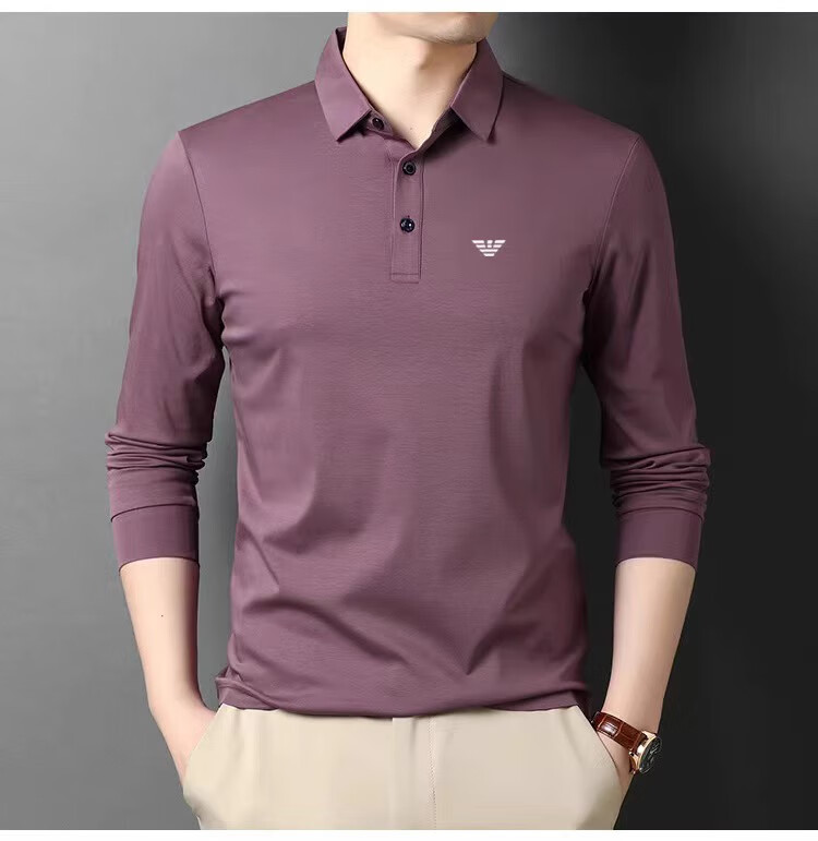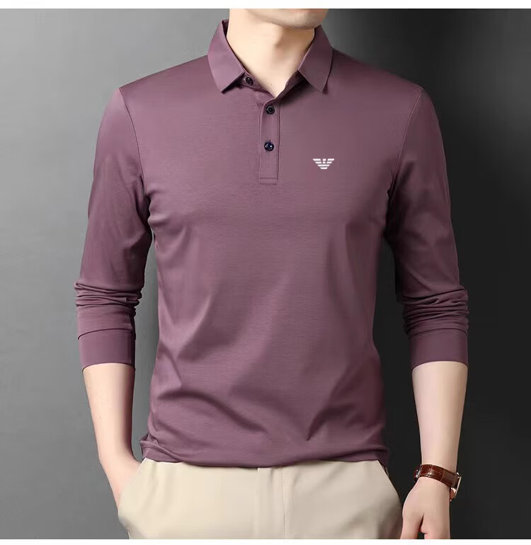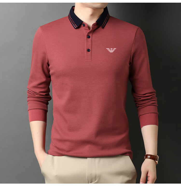 Falai Armani high-end long-sleeved T-shirt men's pure cotton lapel autumn casual business plus velvet warm polo shirt 55155 black L 175/92A suitable for 140-160Jin Jin equals 0.5 kg