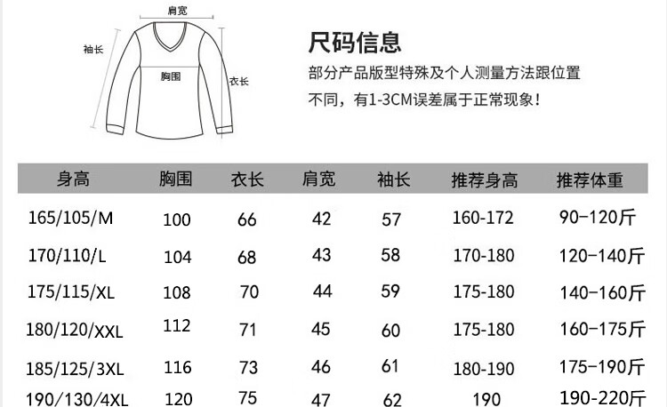 China (cm) 165 / 88-90 170 / 96-98 175 / 108-110 180 / 118-122 185 / 126-130