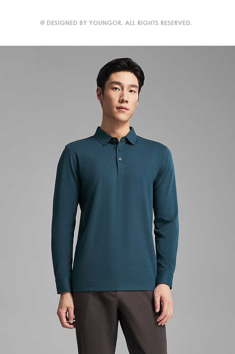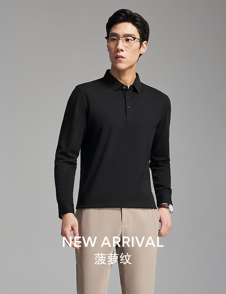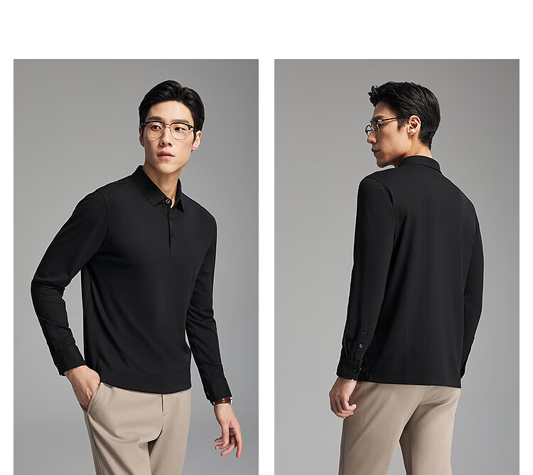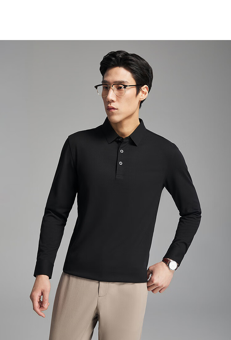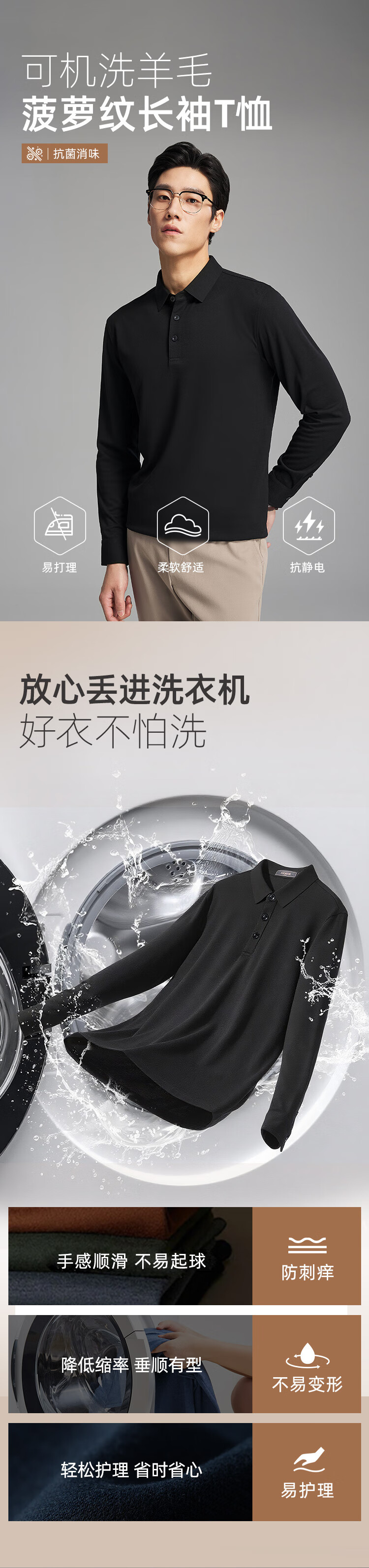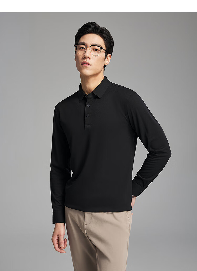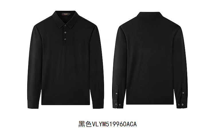 Youngor long-sleeved POLO shirt men's wool blended fabric men's POLO shirt soft and comfortable 2025 new style black VLYM519960ACA XL (recommended 150-165Jin Jin equals 0.5kg)