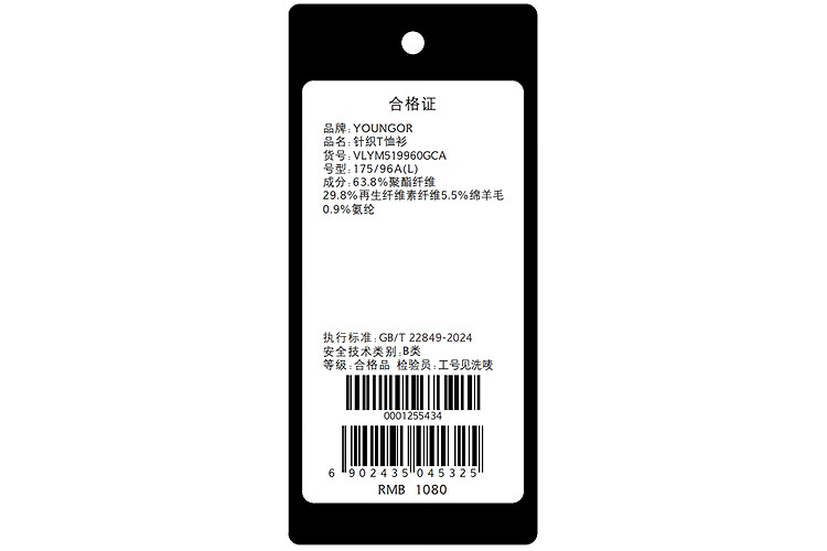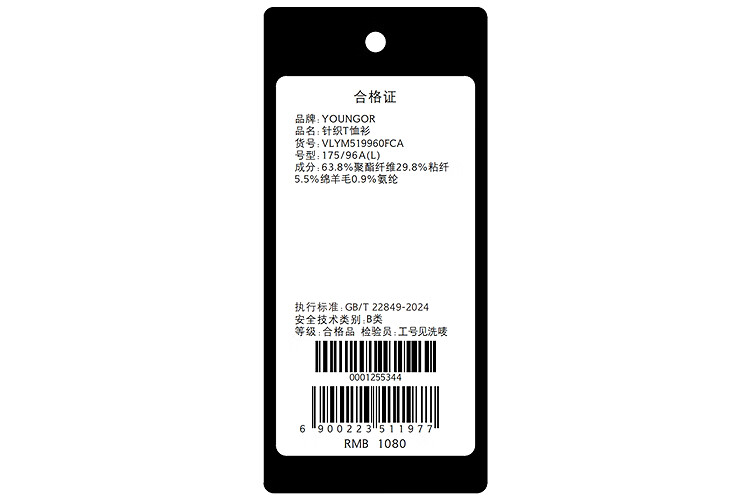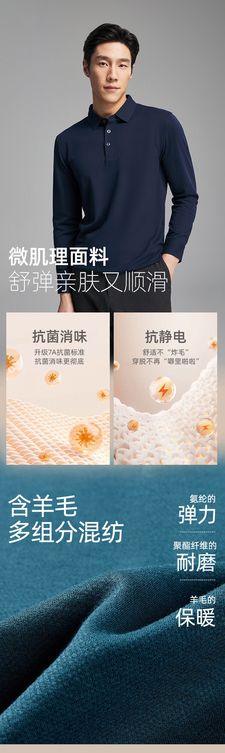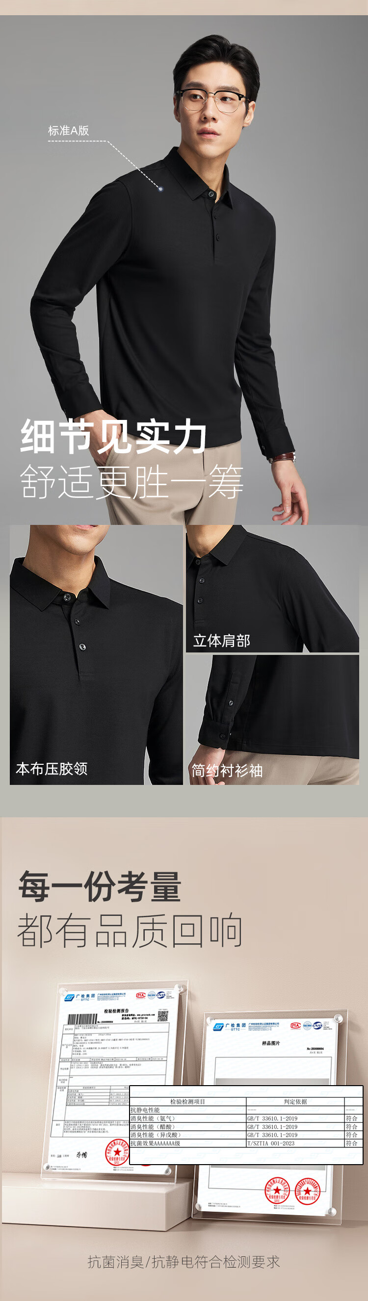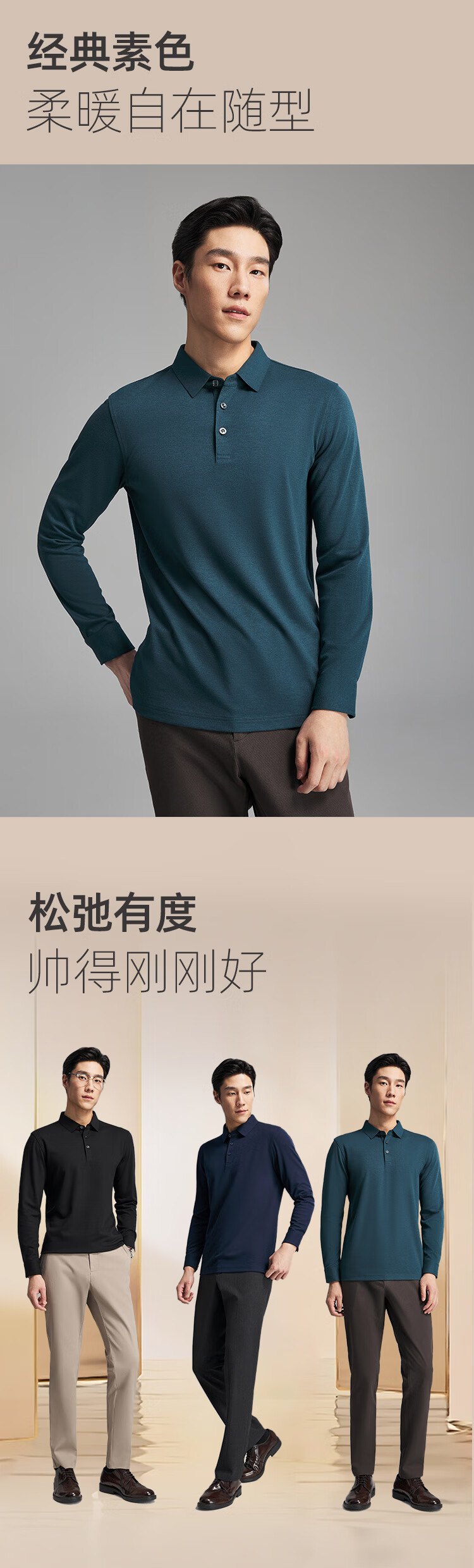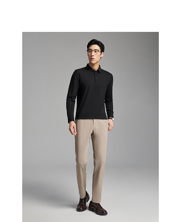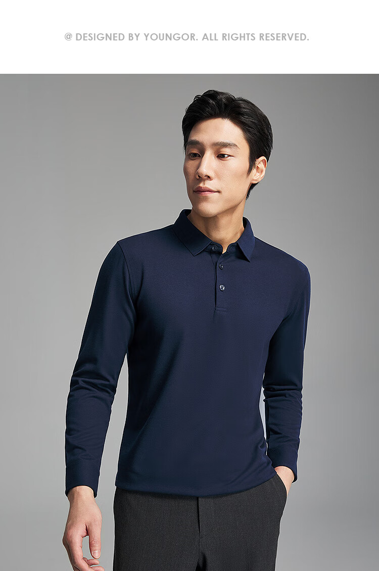 Youngor long-sleeved POLO shirt men's wool blended fabric men's POLO shirt soft and comfortable 2025 new style black VLYM519960ACA XL (recommended 150-165Jin Jin equals 0.5kg)