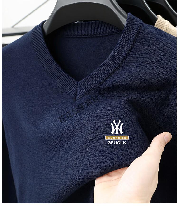 Playboy (PLAYBOY) brand cardigan men's 100 pure wool autumn and winter V-neck sweater middle-aged men's dad's bottoming sweater sweater long-sleeved A53 camel Y XL 175 recommended 135-150 Jin Jin equals 0.5 kg