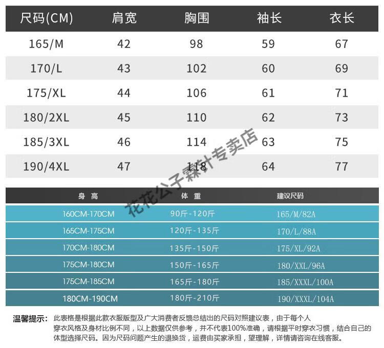 China (cm) 165 / 88-90 170 / 96-98 175 / 108-110 180 / 118-122 185 / 126-130
