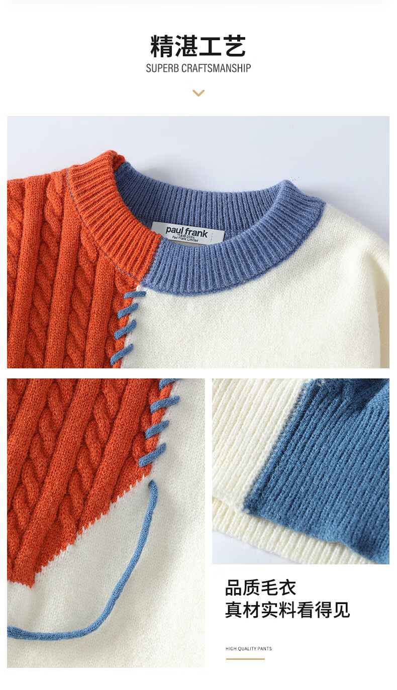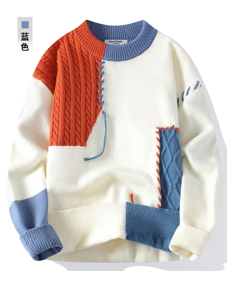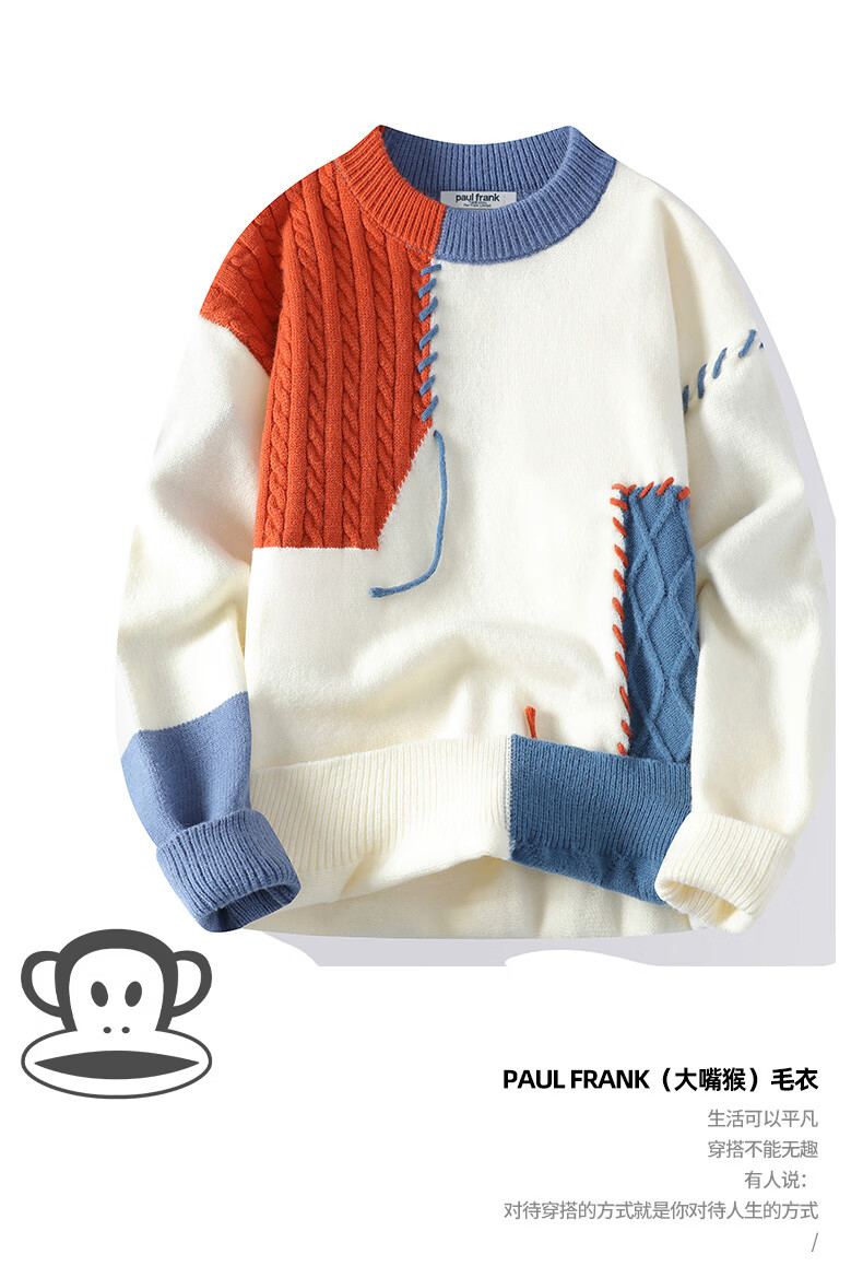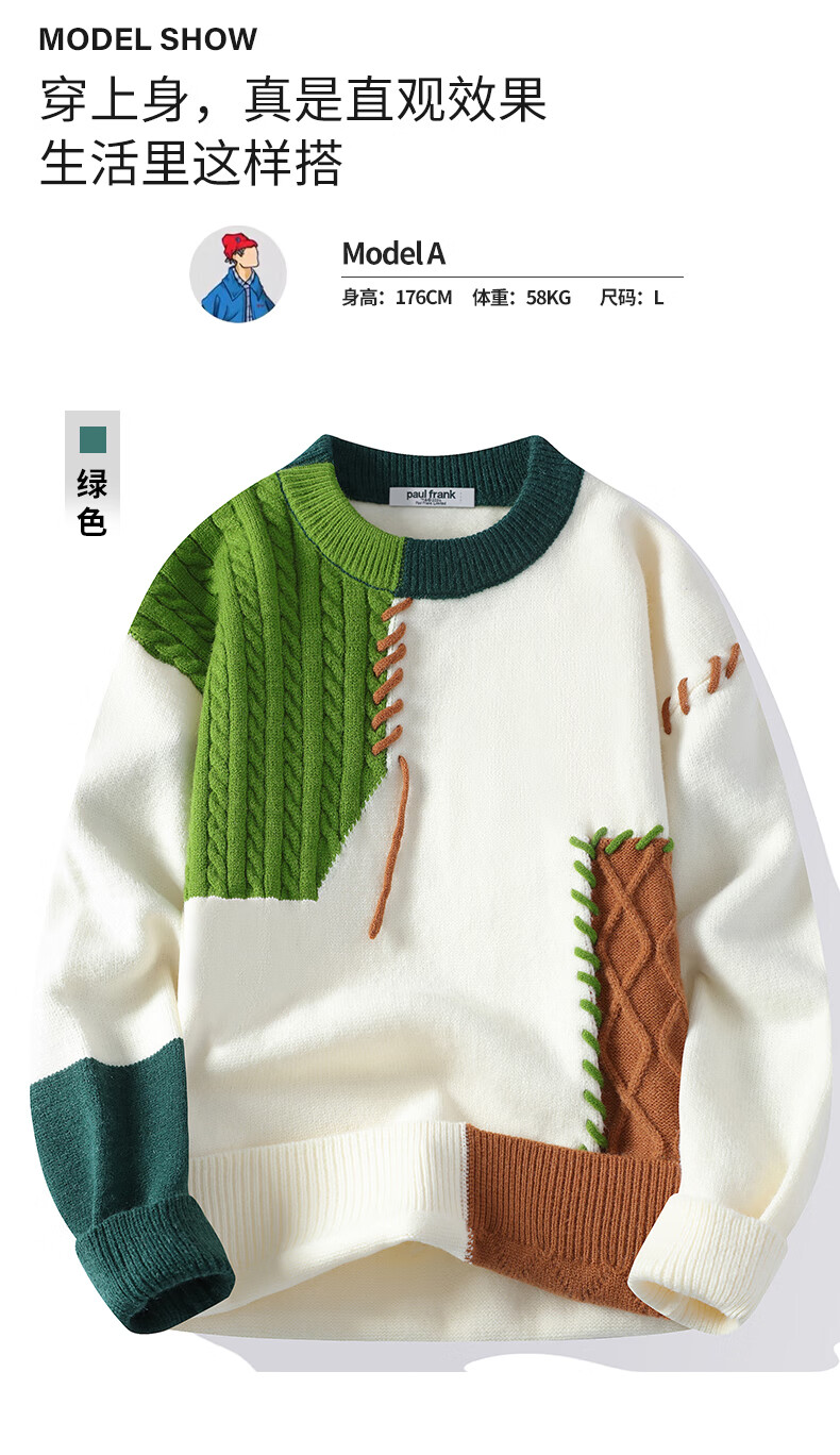 Big mouth monkey (paul frank) American trendy warm sweater men's spring and autumn new splicing loose knitted bottoming shirt casual and versatile men's clothing 7011C green official authentic XL recommended 120-135Jin Jin equals 0.5 kg