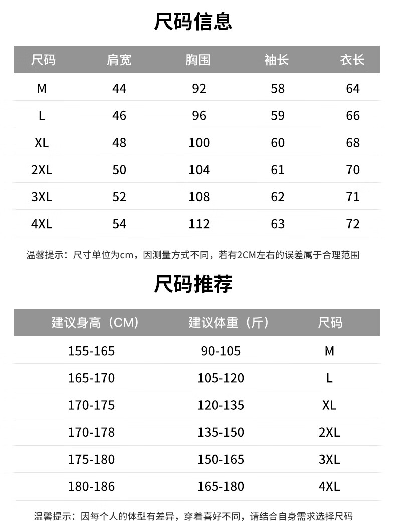 China (cm) 165 / 88-90 170 / 96-98 175 / 108-110 180 / 118-122 185 / 126-130