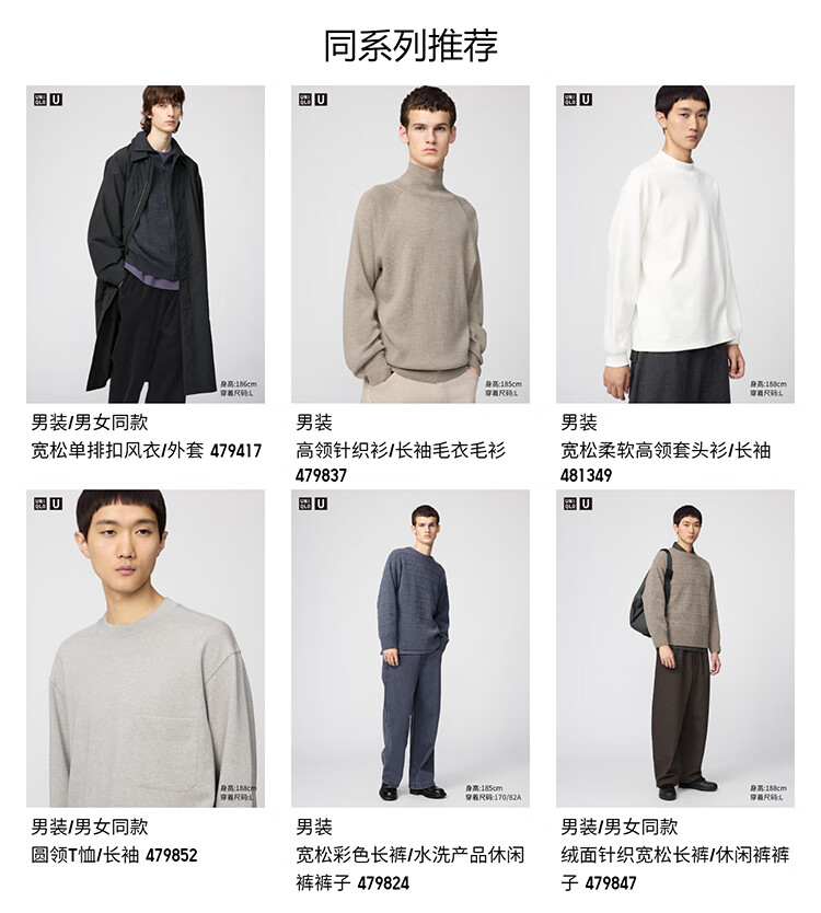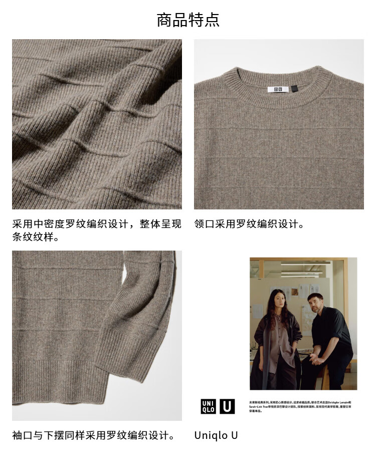 UNIQLO collaboration men's soft sheep wool round neck sweater long-sleeved sweater sweater 25 autumn and winter 479832 33 Khaki L /175/100A