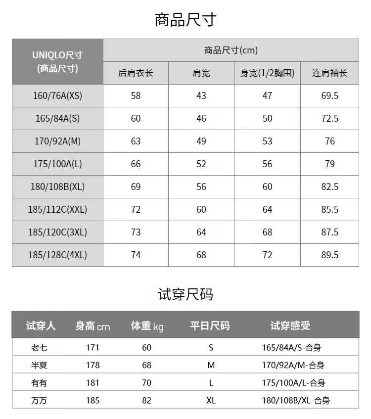 China (cm) 160-165/84-86 165-170 / 88-90 167-172 / 92-96 168-173 / 98-102 170-176 / 106-110