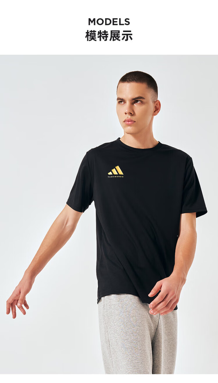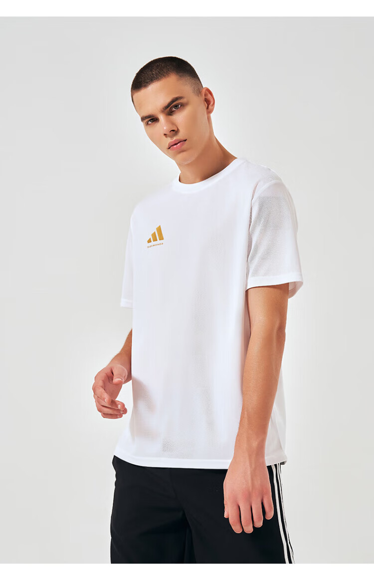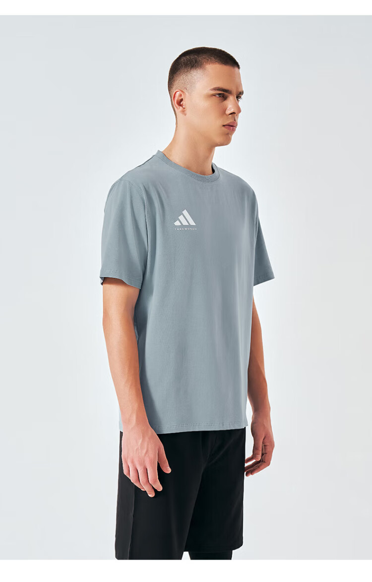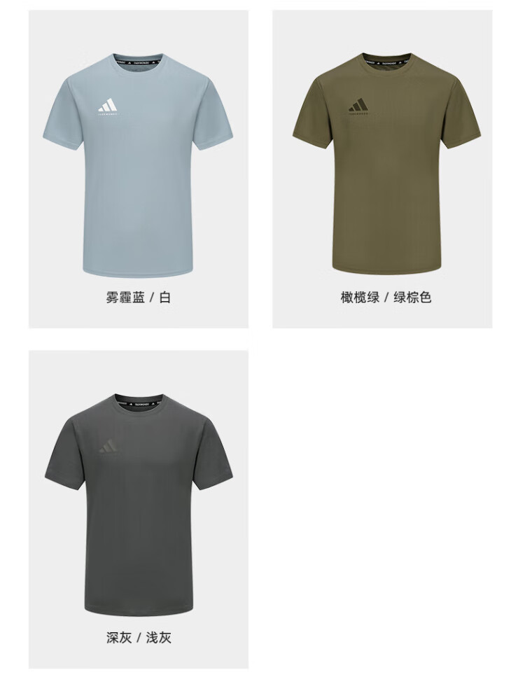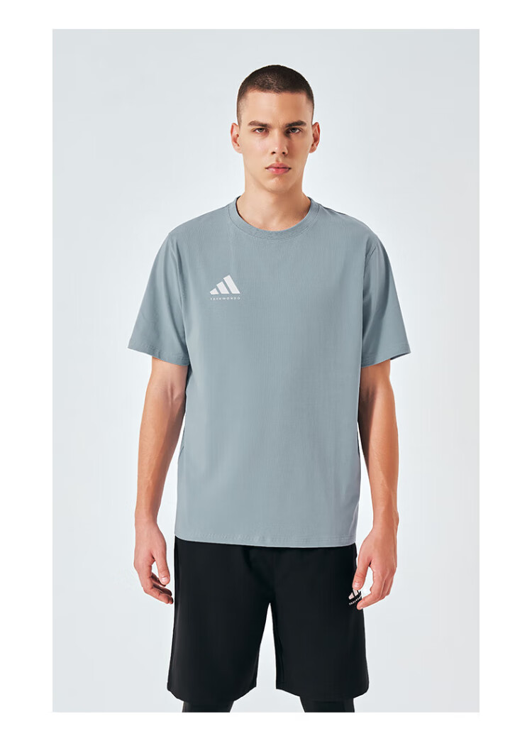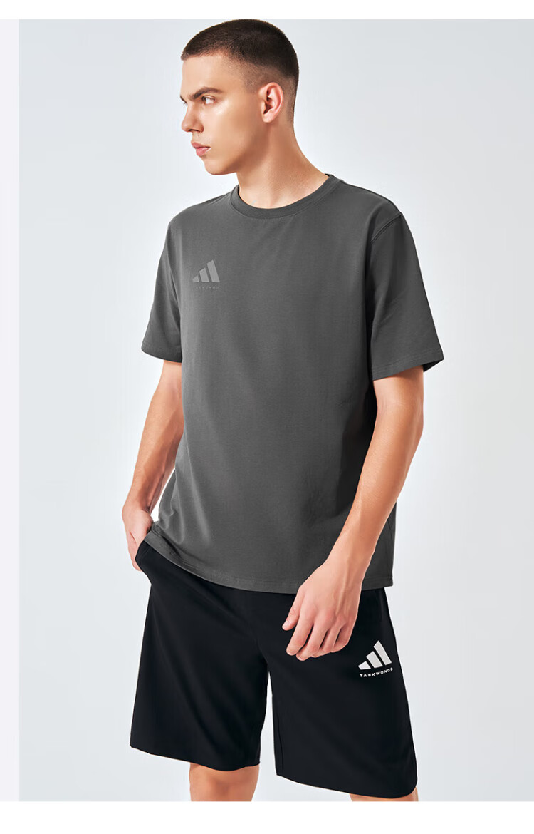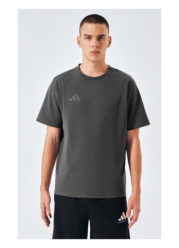 Adidas short-sleeved men's 2025 sports skin-friendly breathable fitness outdoor lightweight quick-drying T-shirt dark gray/light gray XL