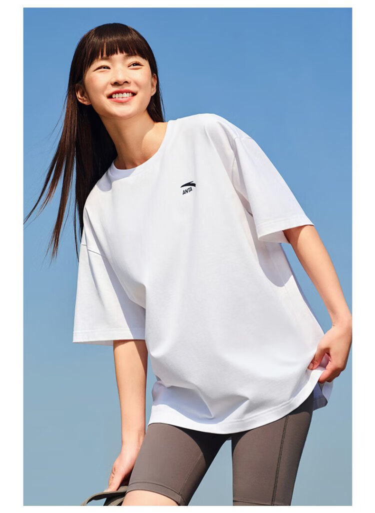 Anta Outlets Casual Short Sleeve T-shirt Summer Simple Solid Color Round Neck Sports Bottoming Shirt Loose Couple Top