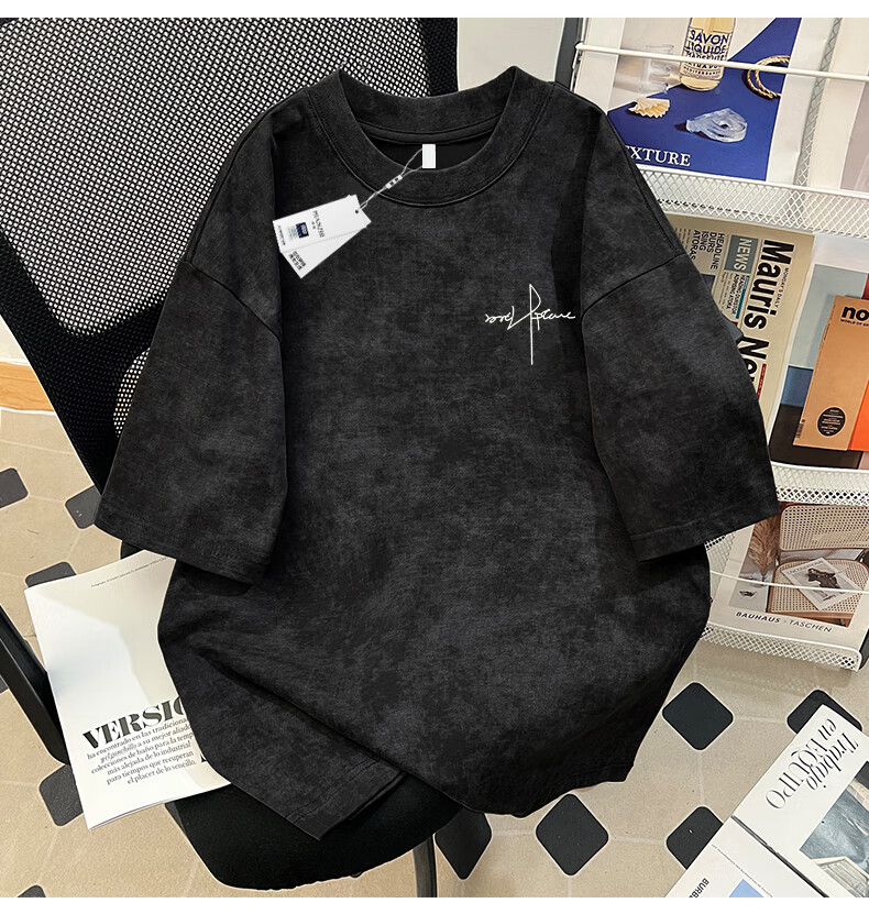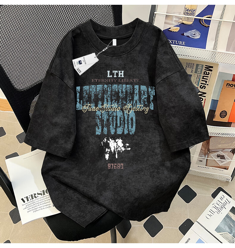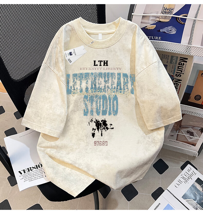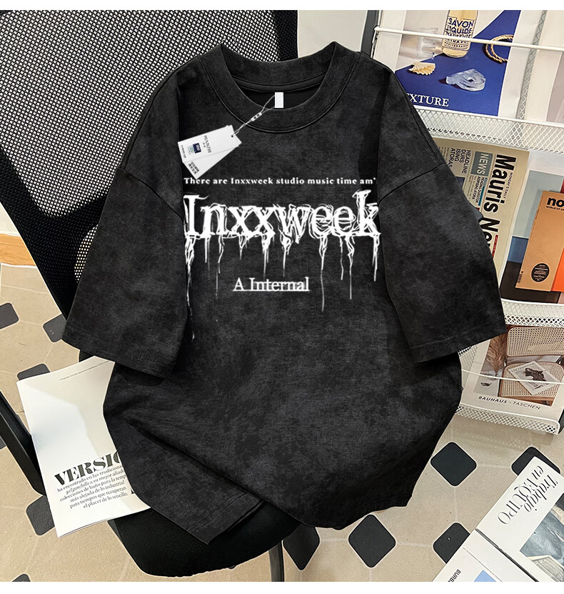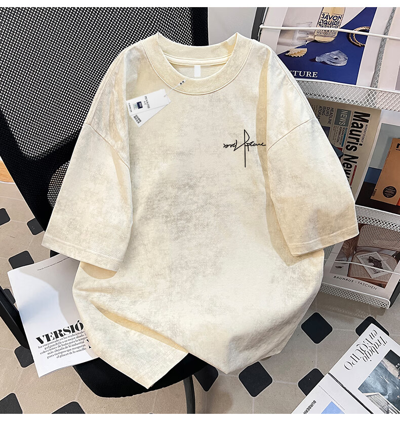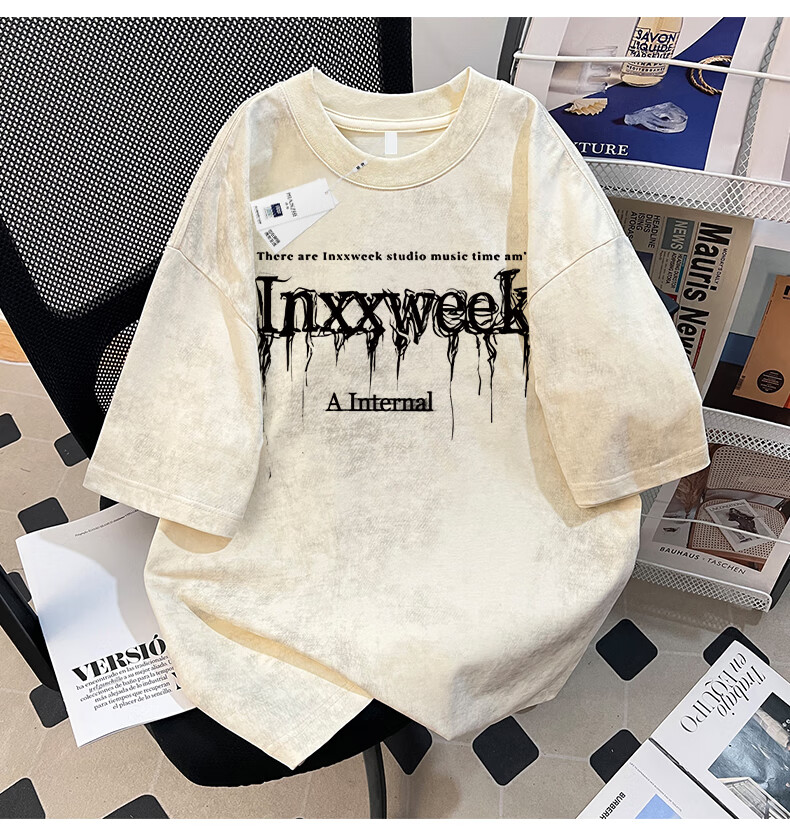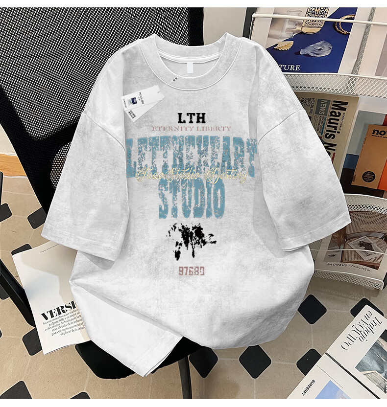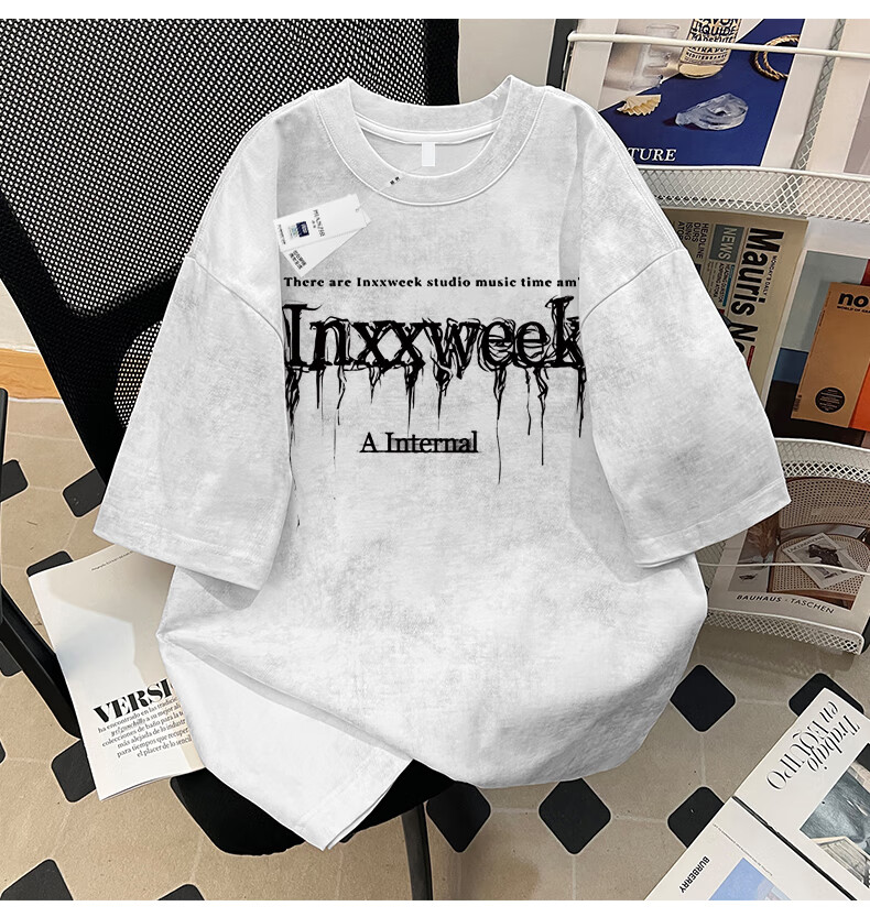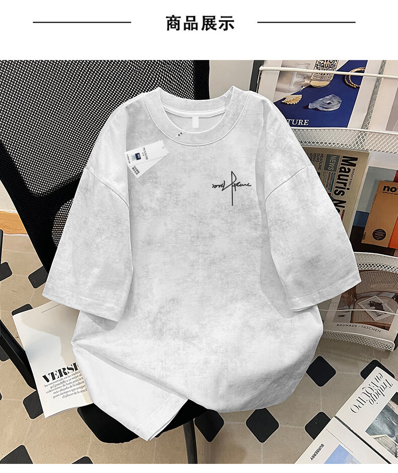 Cotton to American style tie-dye pure cotton short-sleeved T-shirt for men's summer new fashion brand casual loose half-sleeved high street bottoming shirt T-shirt white (ZZ03 black letter) L 115-130Jin Jin equals 0.5 kg