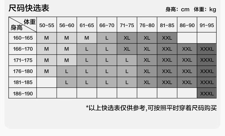 China (cm) 160-165/84-86 165-170 / 88-90 167-172 / 92-96 168-173 / 98-102 170-176 / 106-110