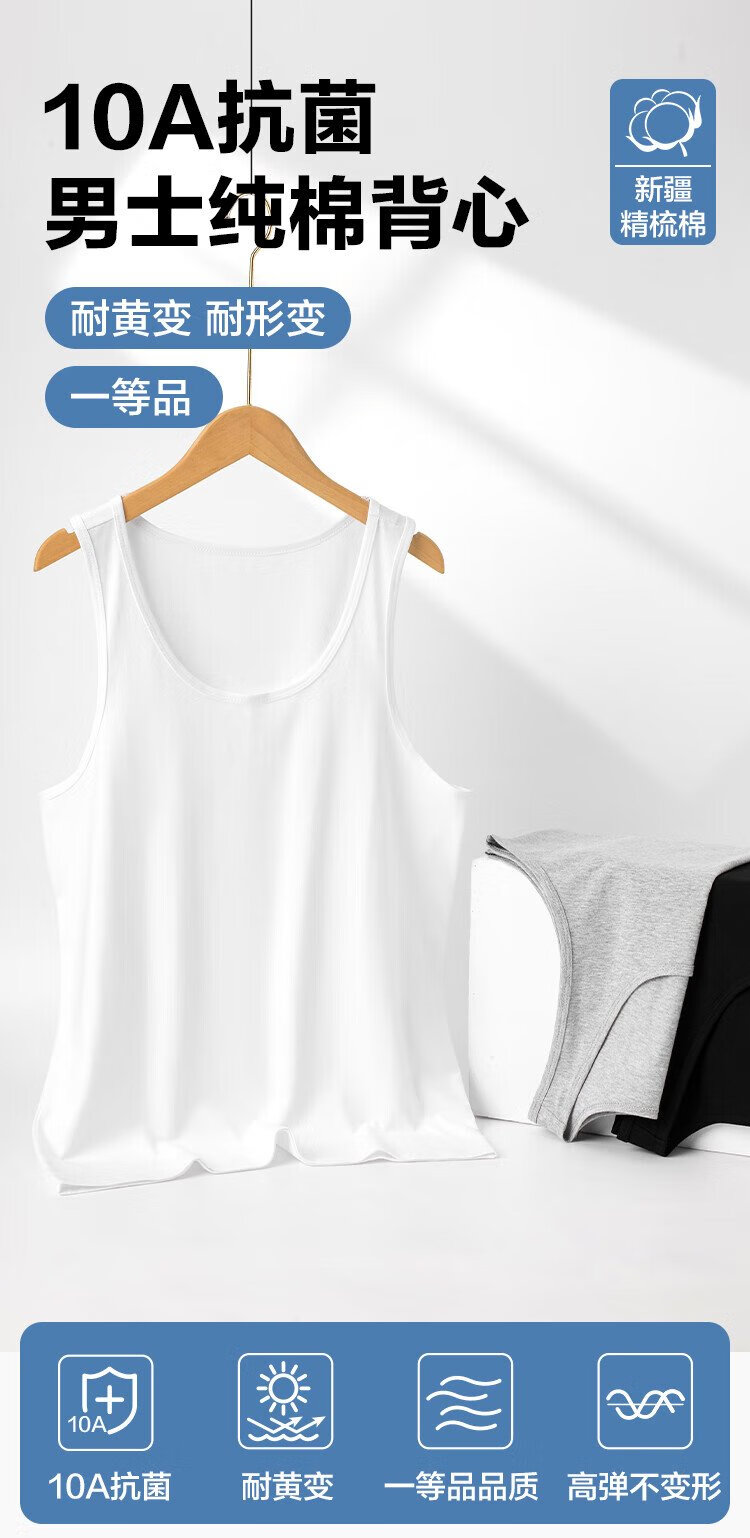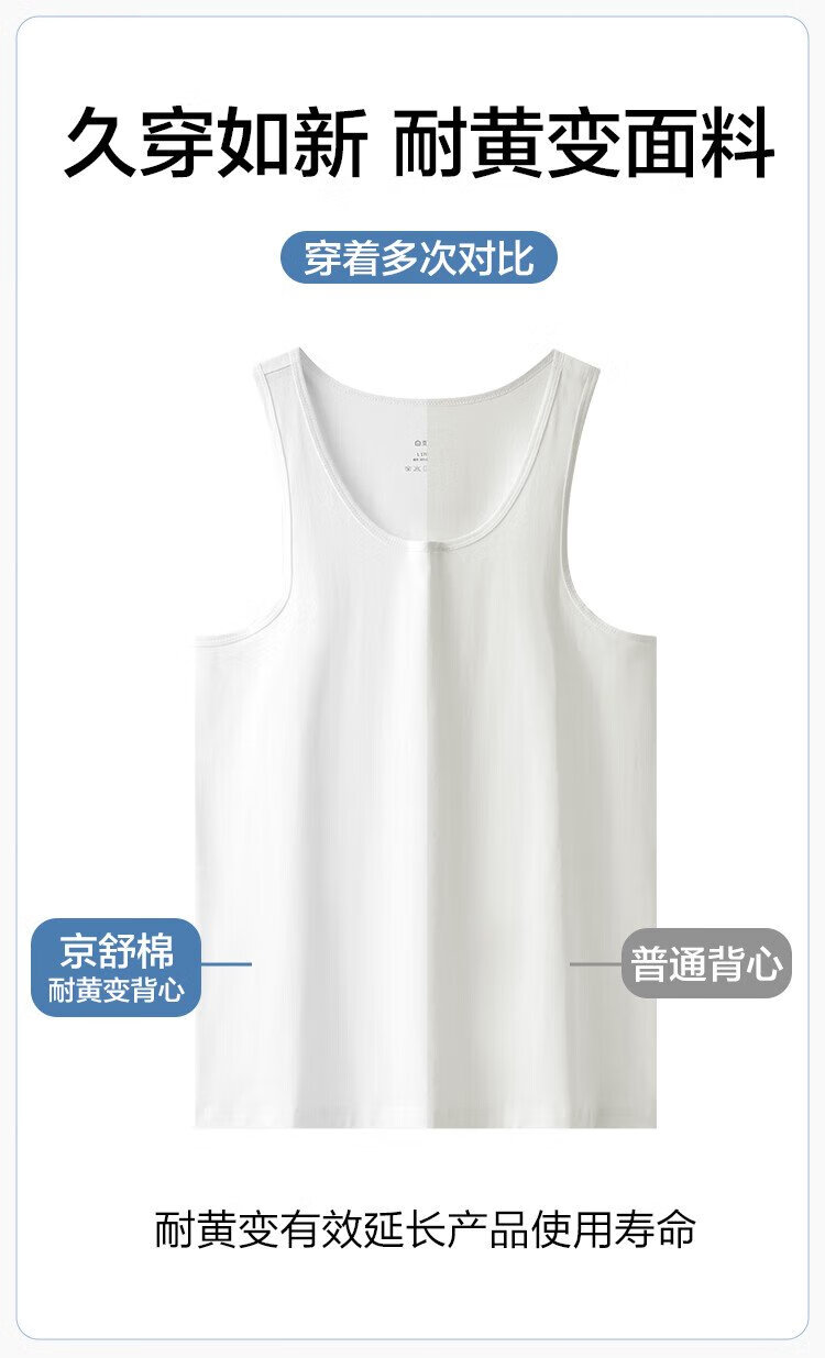 Jingshu cotton private brand cotton men's 10A antibacterial cotton sweat-absorbent breathable vest base layer white 2XL