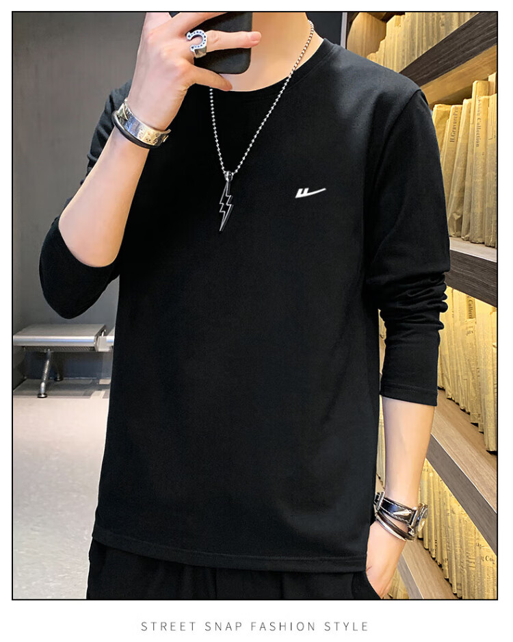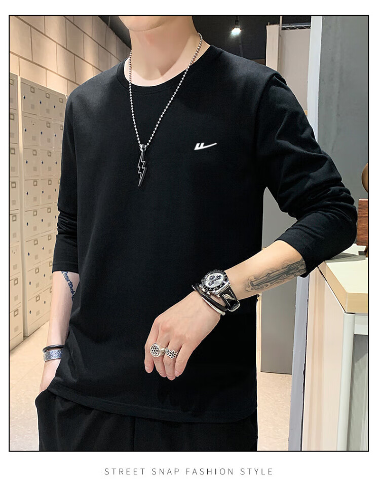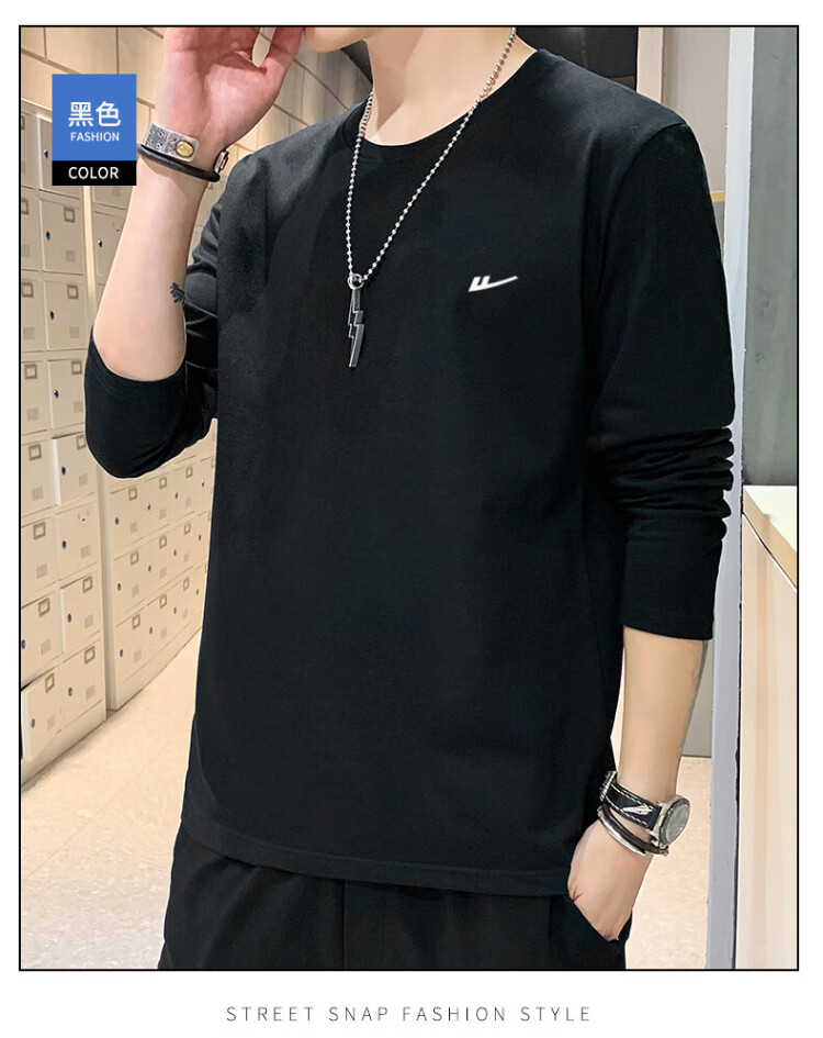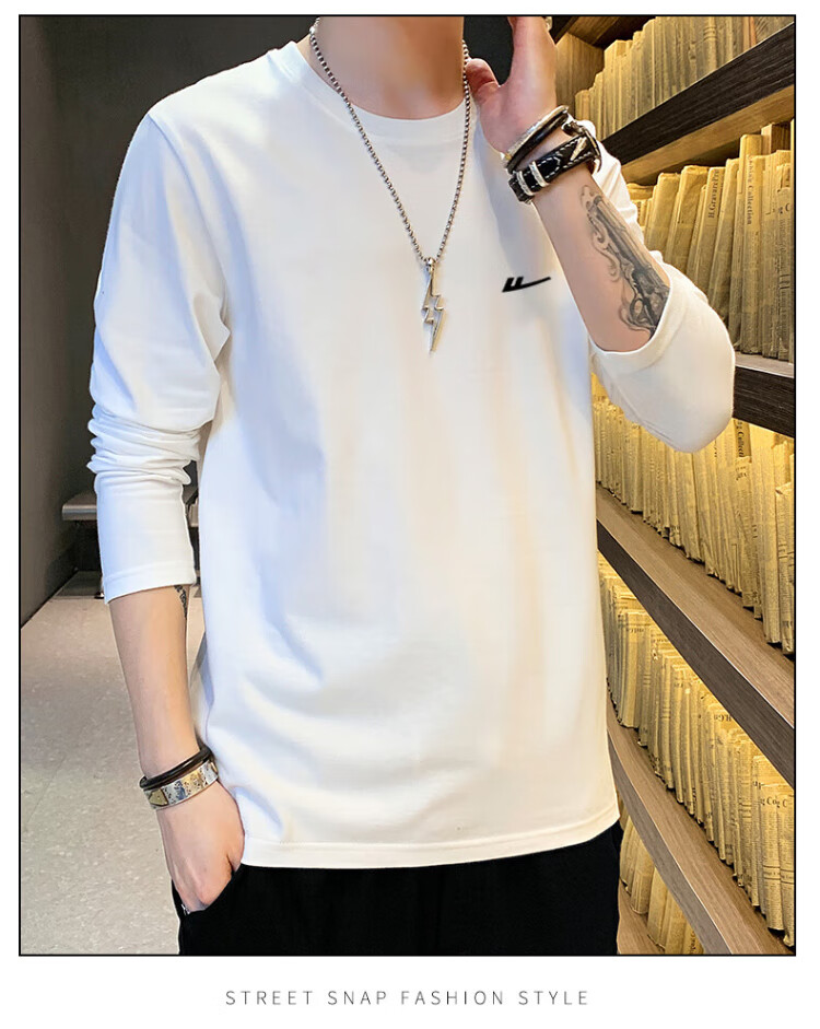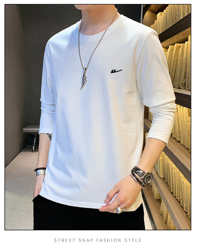 Pull back long-sleeved T-shirt men's pure cotton round neck printed loose pullover bottoming shirt autumn casual trend breathable top men's clothing