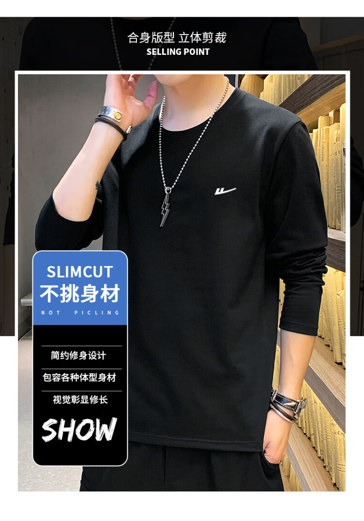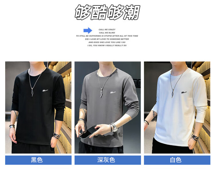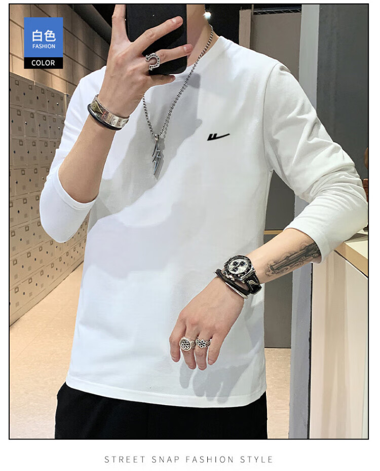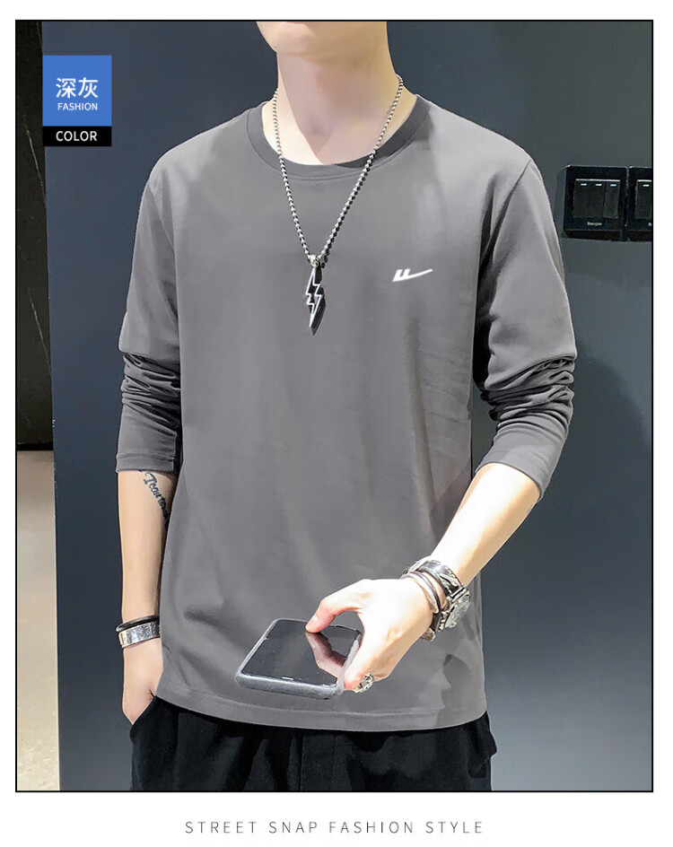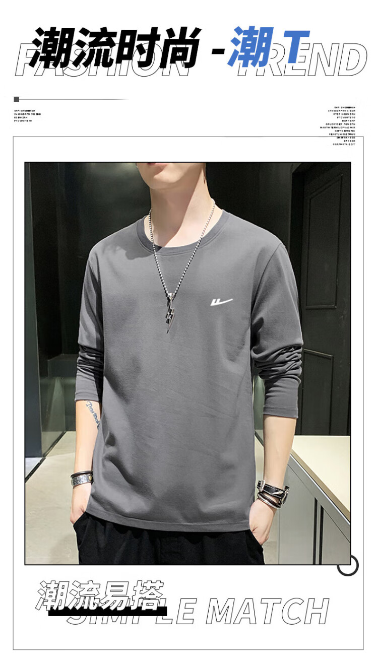 Pull back long-sleeved T-shirt men's pure cotton round neck printed loose pullover bottoming shirt autumn casual trend breathable top men's clothing